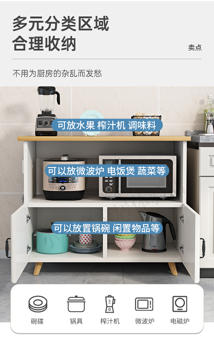 K8 주방 수납 캐비닛 수납 캐비닛 전자 레인지 바닥 스탠딩 다층 수납 캐비닛 선반 도어 그릇이있는 다기능 찬장
