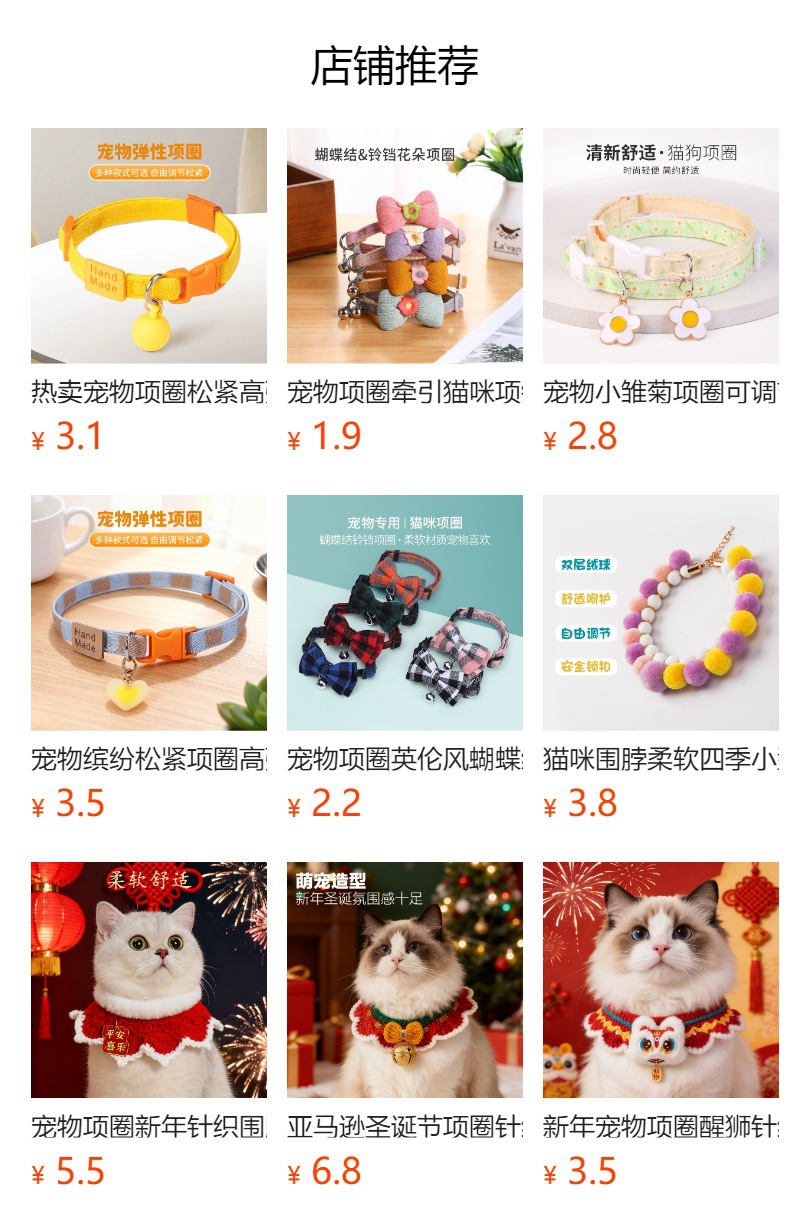 국경을 넘는 애완동물 목걸이, 조절 가능한 고탄성 고양이 목걸이, 강아지 목걸이 액세서리, 애완동물 용품 도매스토어 가기