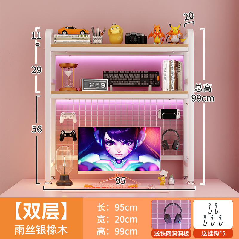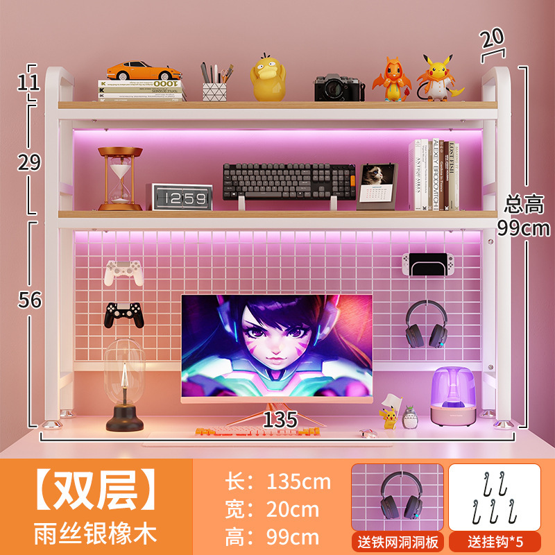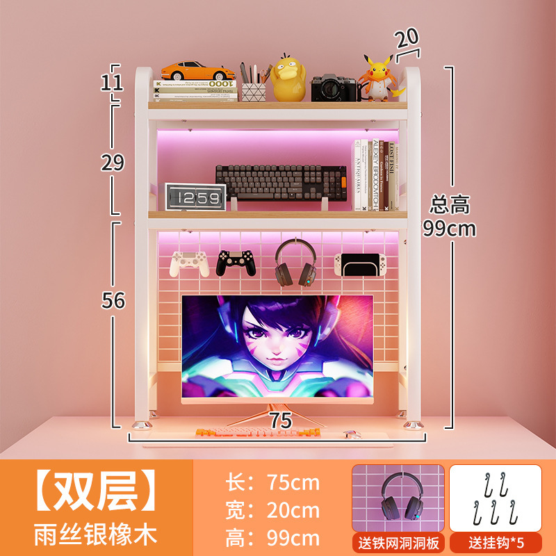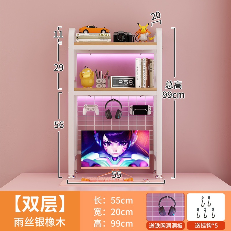 데스크탑 스토리지 랙 컴퓨터 책상 데스크탑 스토리지 랙 구멍이 있는 다층 책장 학생 e-스포츠 스타일 정리 랙