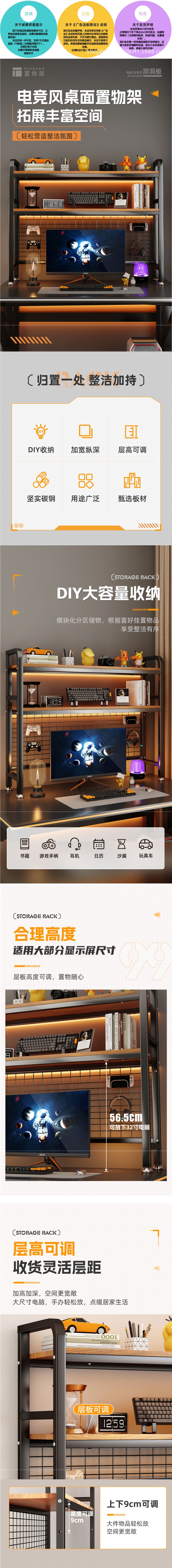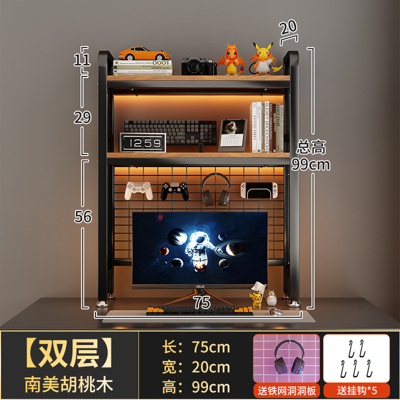 데스크탑 스토리지 랙 컴퓨터 책상 데스크탑 스토리지 랙 구멍이 있는 다층 책장 학생 e-스포츠 스타일 정리 랙스토어 가기