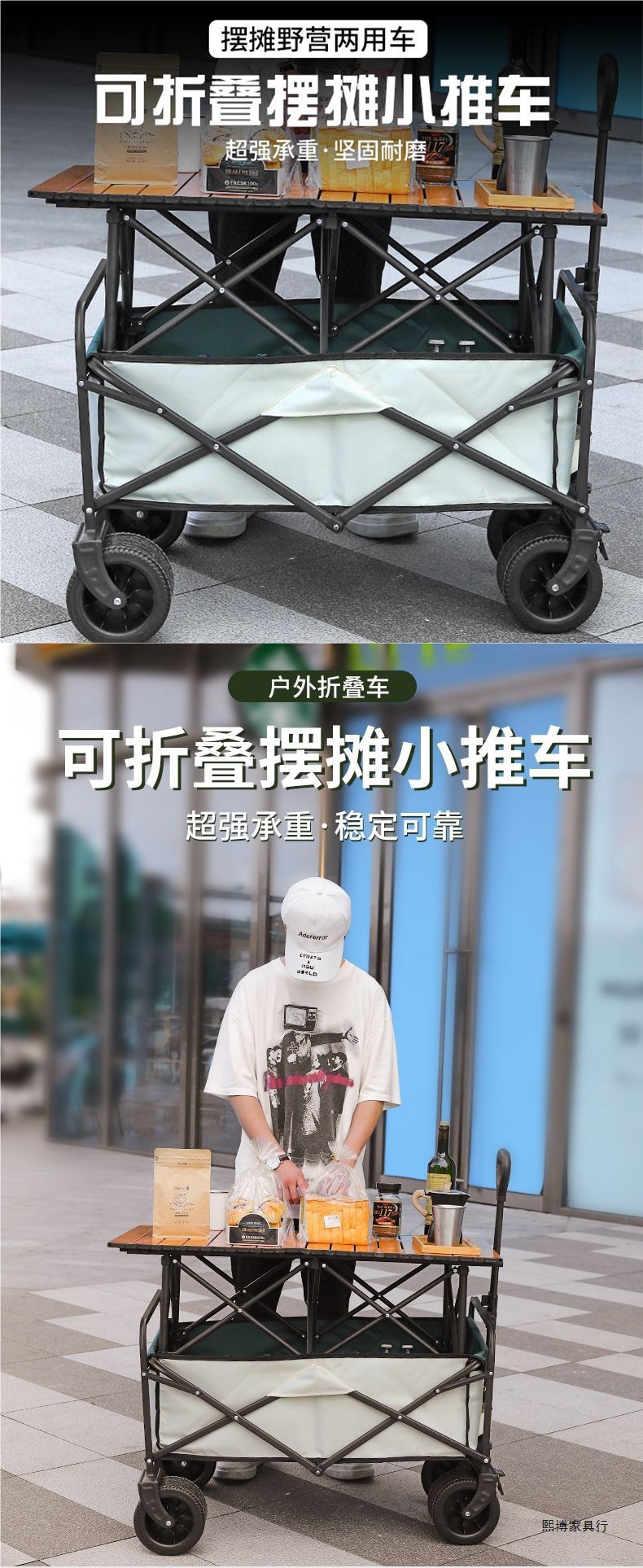 • 캠프카 + 접이식 스톨 테이블 - 대형 트레일러 탱크 휠(베이지색)