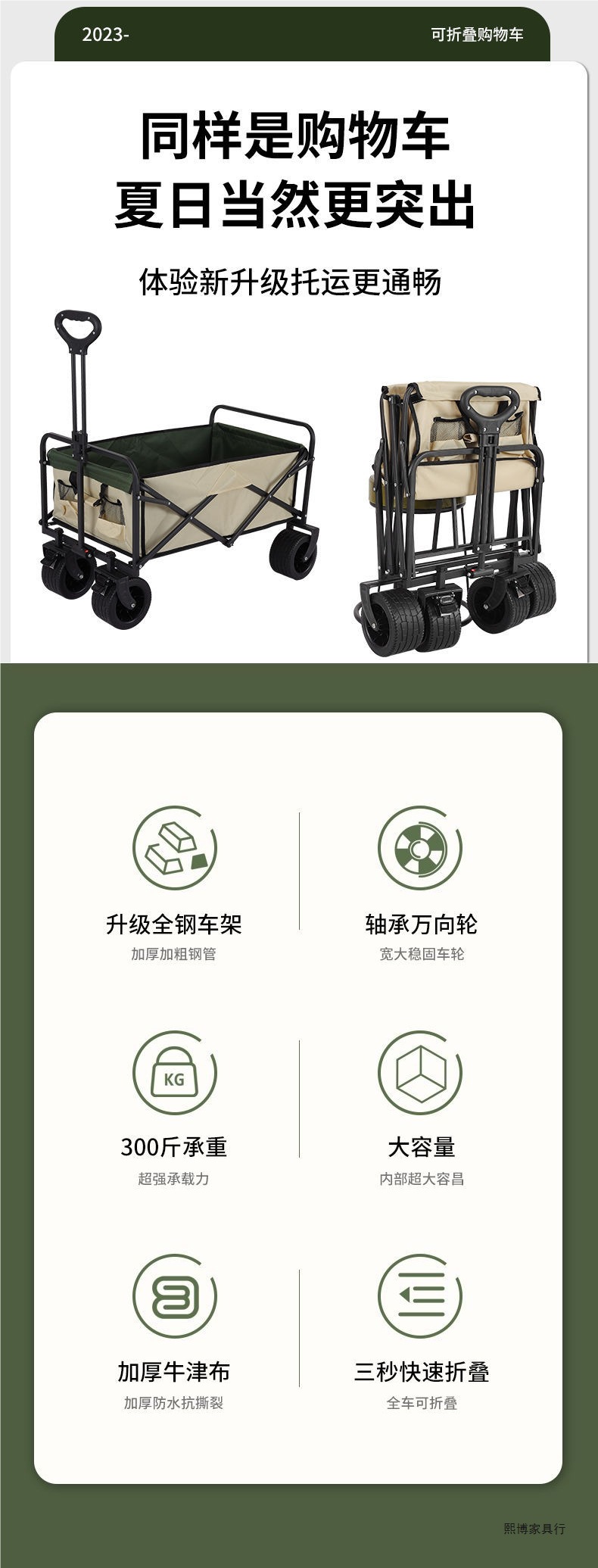• 캠퍼밴 + 접이식 테이블 - 대형 트레일러 탱크 휠(카키색)