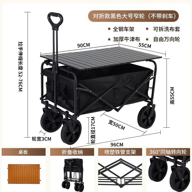 • 캠프카 + 접이식 테이블 - 대형 트레일러 탱크 휠(블랙)