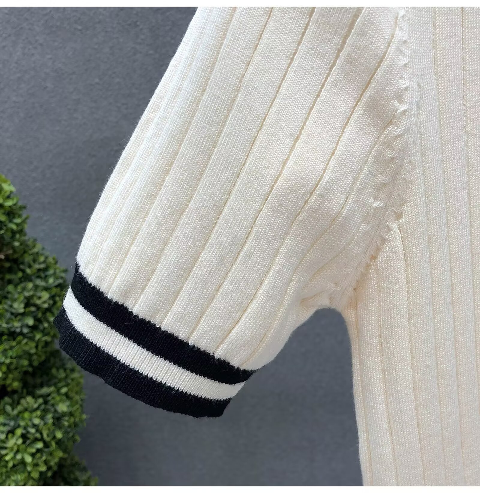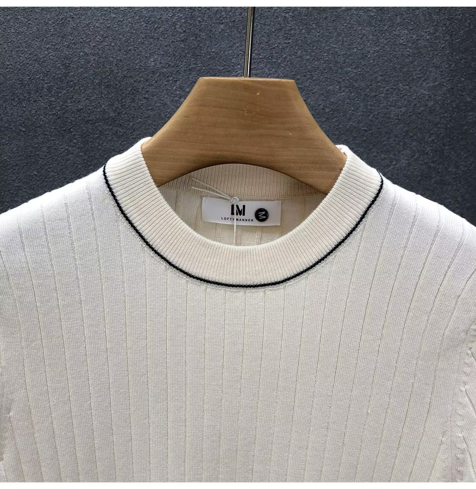 여름 새로운 트렌디 남성 통기성 스웨터 슬림 탑 캐주얼 맞춤형 대비 색상 스트라이프 남성용 반팔 티셔츠