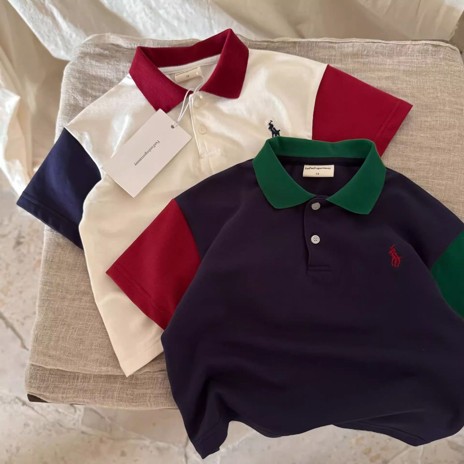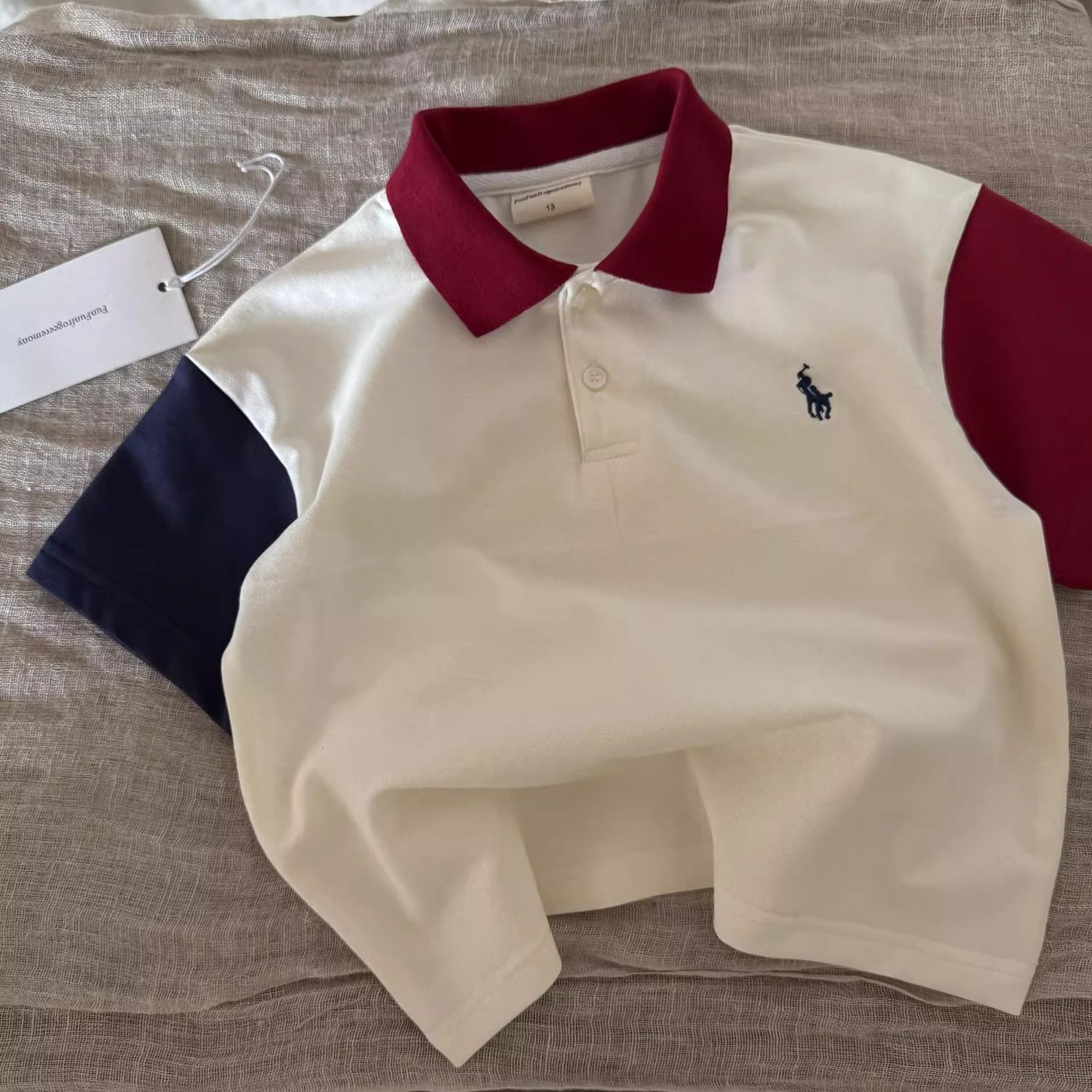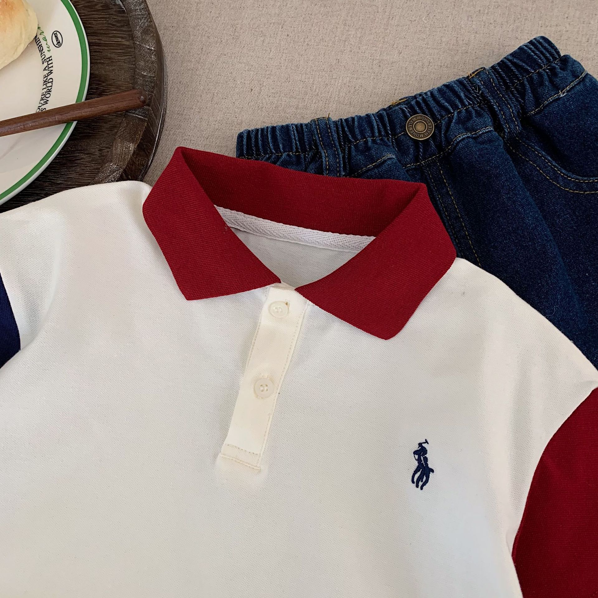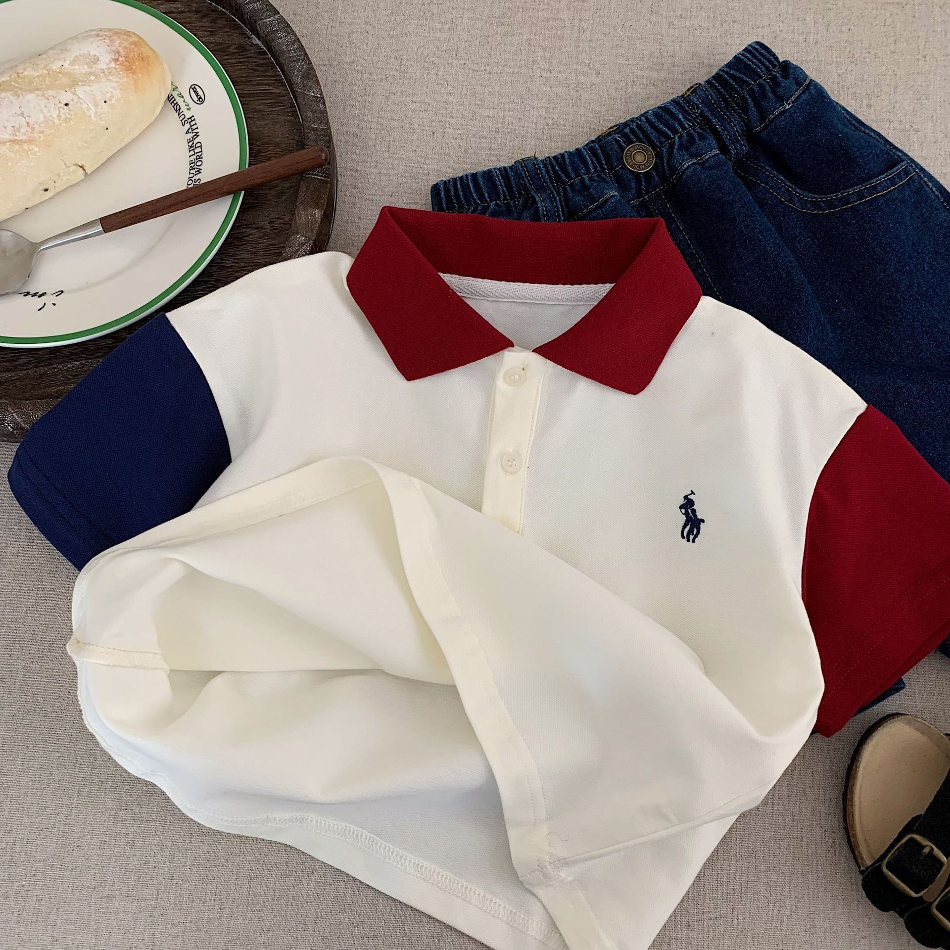 국경 간 아동 의류 소년 반팔 티셔츠 대비 색상 2025 여름 폴로 셔츠 옷깃 세련된 잘 생긴 아동상의