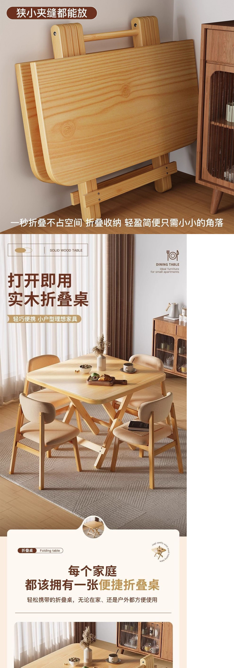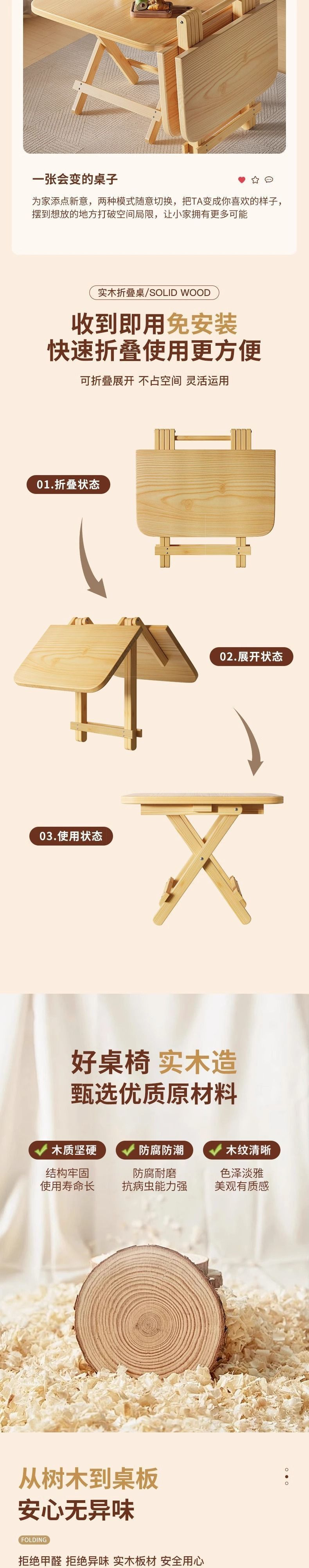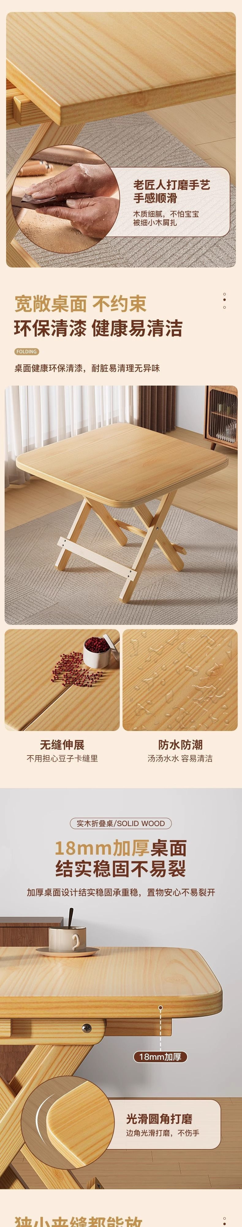 단단한 나무 접이식 테이블 가정용 식탁 간단한 휴대용 나무 테이블 야외 피크닉 테이블 사각형 스톨 테이블스토어 가기