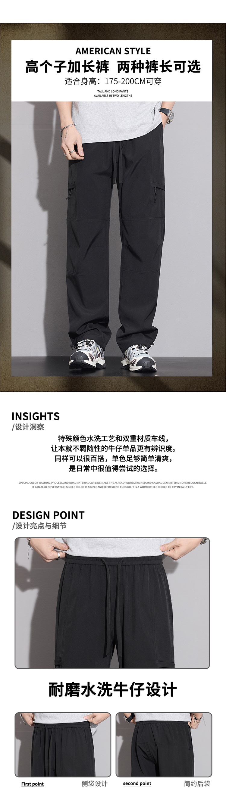 2025 새로운 트렌디 아메리칸 키 큰 남성용 긴 바지, 다용도 스포츠 캐주얼 바지, 남성용 야외 방수 바지