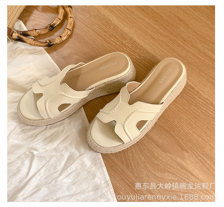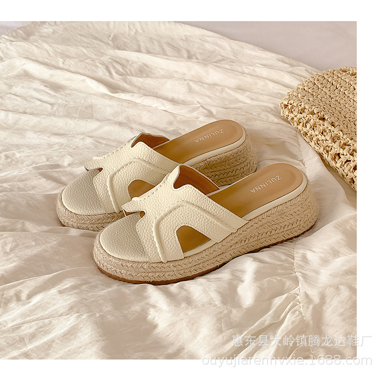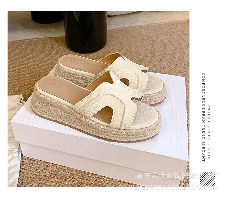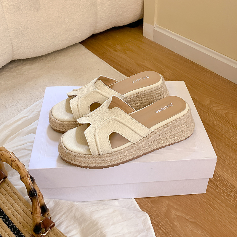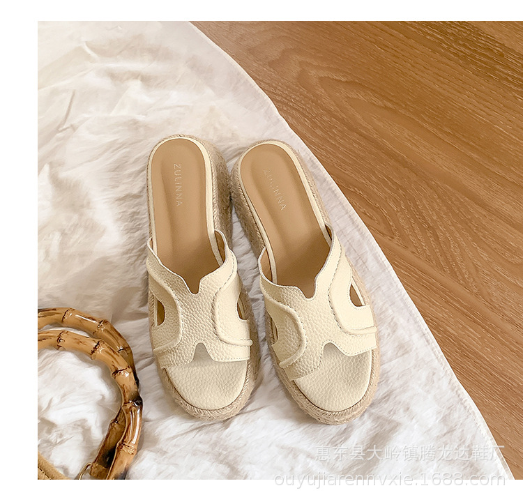 양가죽 버전~포도맘 키높이 6cm 루스와 같은 스타일 여성용 여름용 슬리퍼, 키높이 웨지힐 샌들
