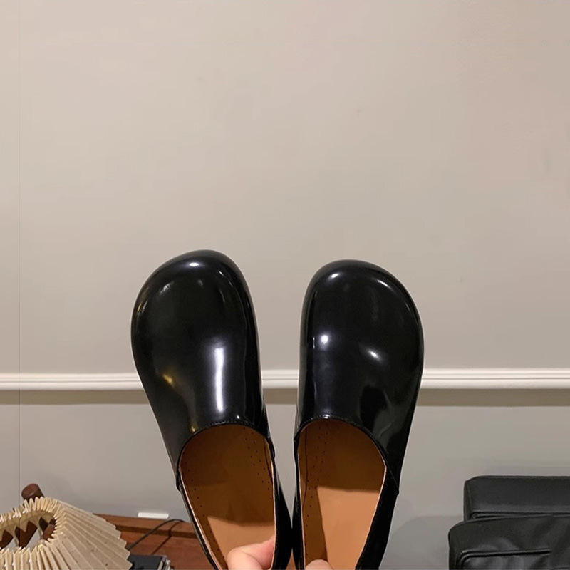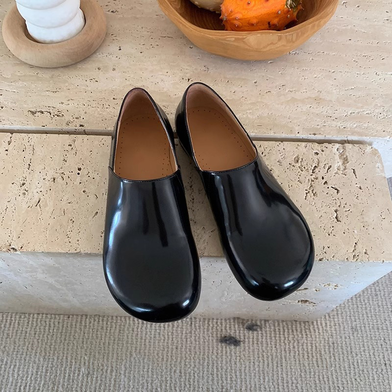 여성을 위한 미니멀리스트 스타일의 특허 가죽 신발 2025 새로운 스타일의 귀여운 둥근 발가락 복고풍 얕은 구멍 가죽 신발 우아하고 슬림한 로퍼