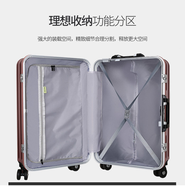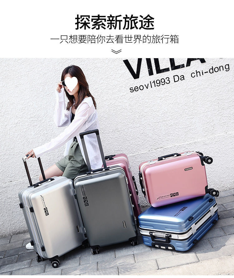 범용 바퀴가 달린 트롤리 케이스, 알루미늄 프레임 케이스, 튼튼하고 내구성이 뛰어난 남성용 및 여성용 여행용 케이스, 비즈니스 20inch 지퍼 24inch 트렌디스토어 가기