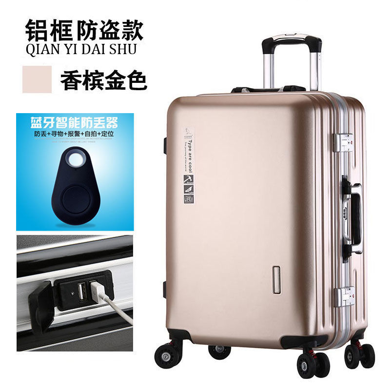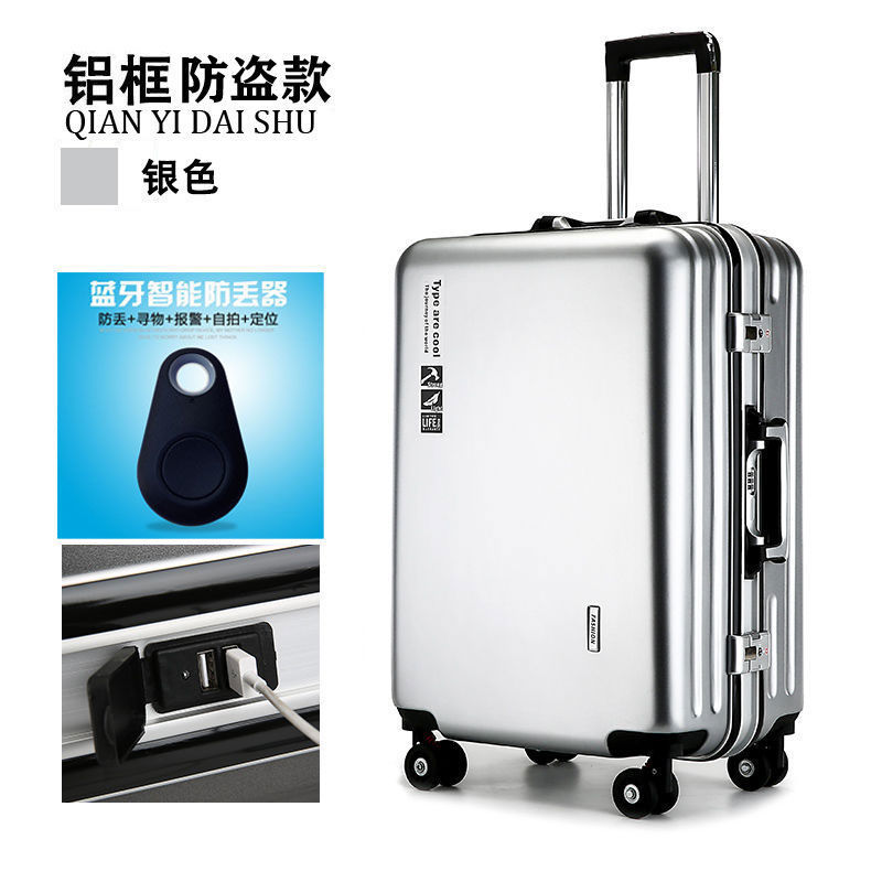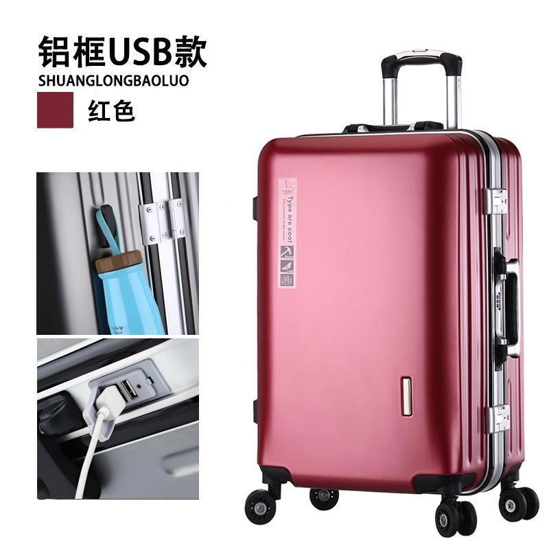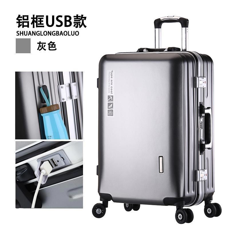 범용 바퀴가 달린 트롤리 케이스, 알루미늄 프레임 케이스, 튼튼하고 내구성이 뛰어난 남성용 및 여성용 여행용 케이스, 비즈니스 20inch 지퍼 24inch 트렌디