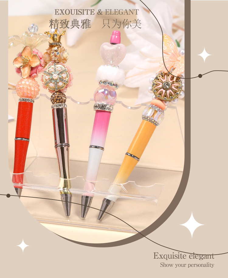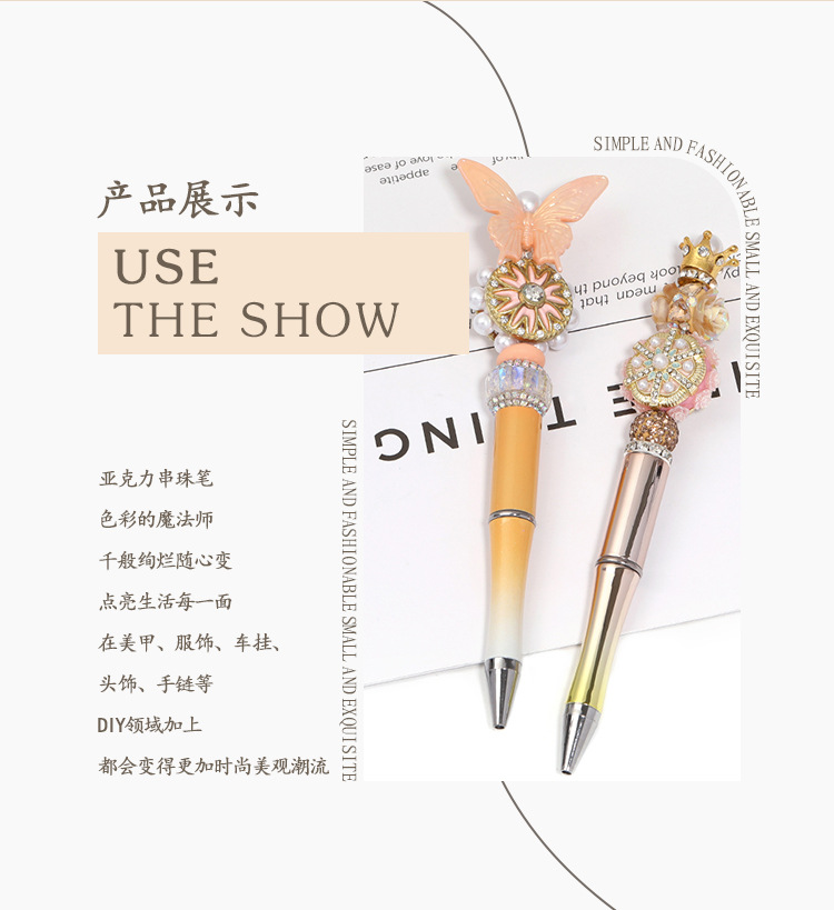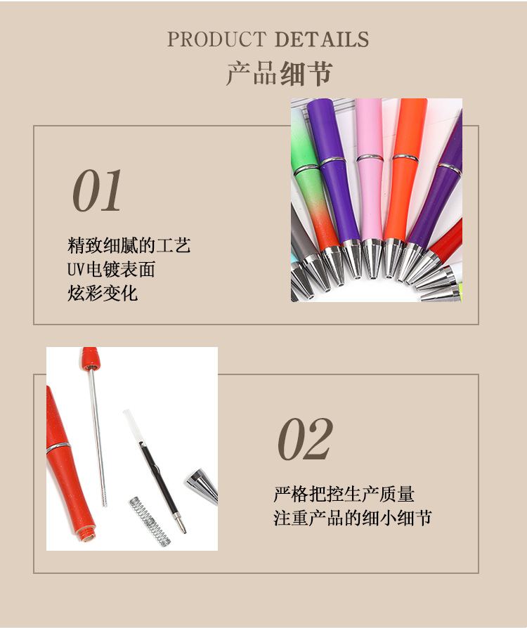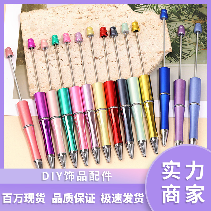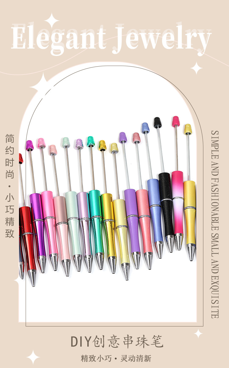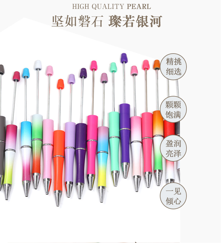 국경을 넘어 인기 있는 DIY 창의적인 투톤 그라데이션 귀여운 펜 UV 도금 삼색 그라데이션 비즈 펜 플라스틱 볼펜스토어 가기