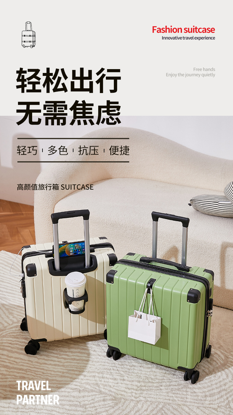 18inch 여성용 기내용 캐리어, 저소음 바퀴, 트롤리 캐리어, 비밀번호 잠금 캐리어, 여행용 캐리어, 만능 바퀴, 봄 신상품스토어 가기