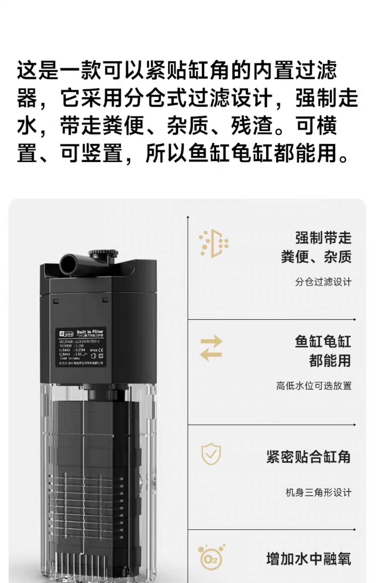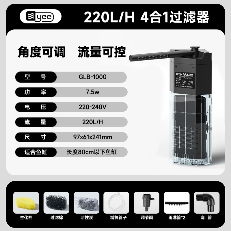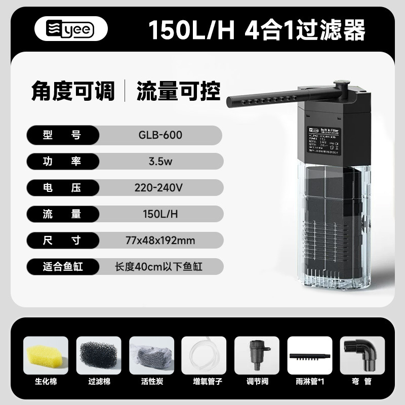 [국경 간 직송] yee 수조 3-in-1 필터 정수 순환 펌프 거북이 산소화 잠수정 펌프