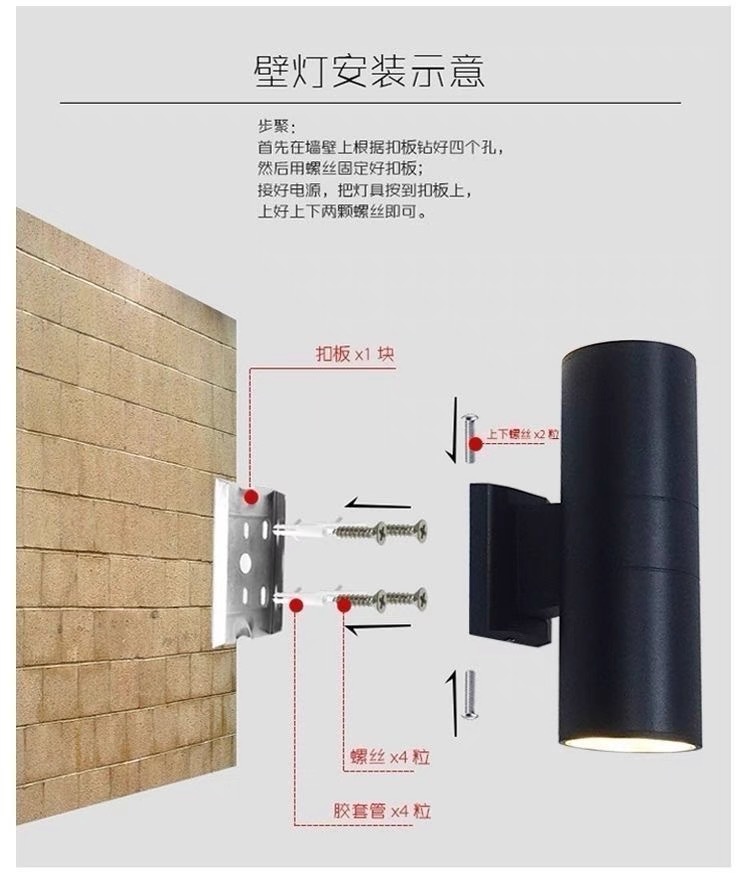 알루미늄 야외 벽 램프 방수 더블 헤드 간단한 복도 복도 계단 램프 호텔 외벽 램프 위아래로 스포트라이트스토어 가기