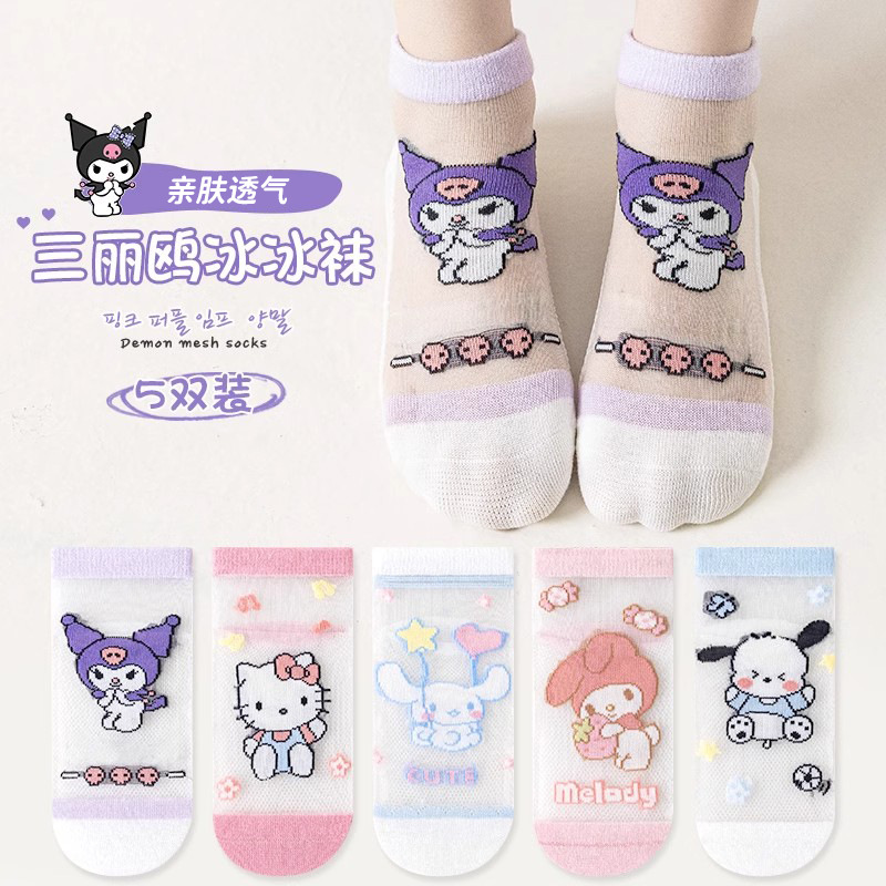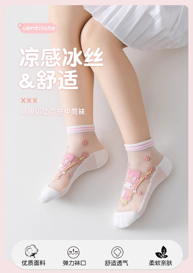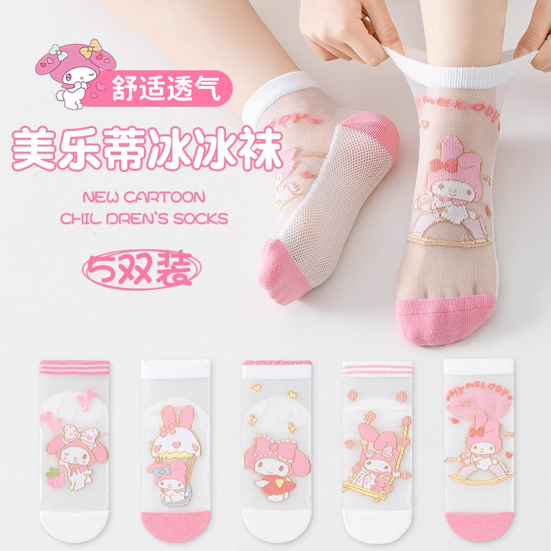 [신제품] 여름 어린이 양말 얇은 카시멜로디 소녀 통기성 메쉬 만화 중공 학생 양말스토어 가기