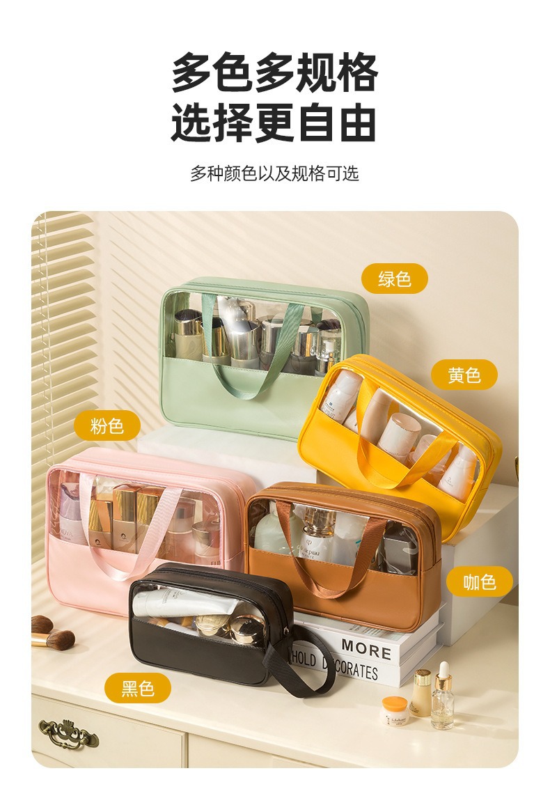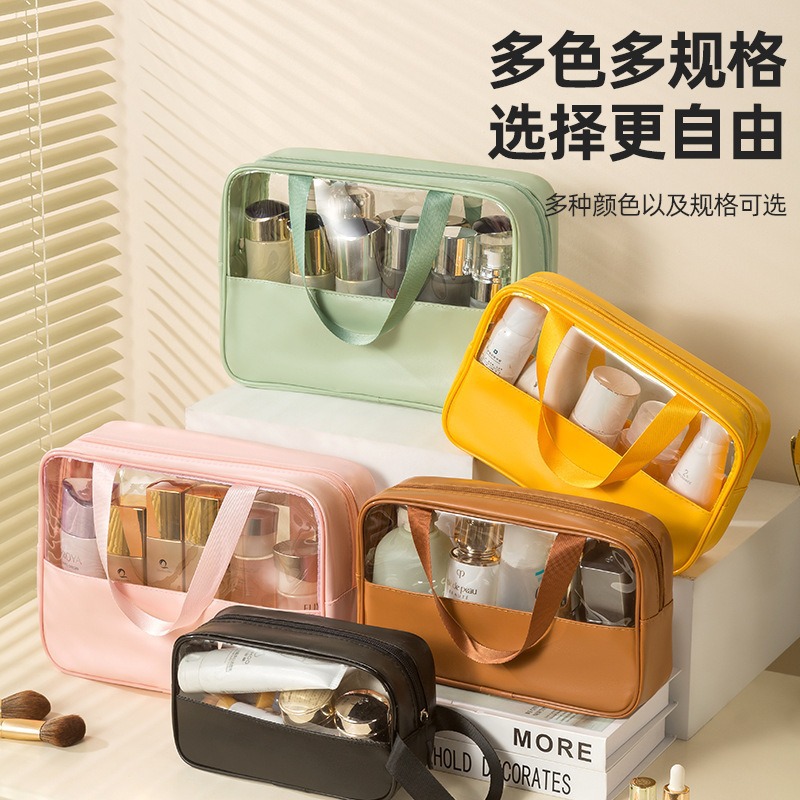 Pvc 투명 화장품 가방 대용량 의류 여행 휴대용 방수 세면 용품 가방 pu 화장품 보관 가방스토어 가기