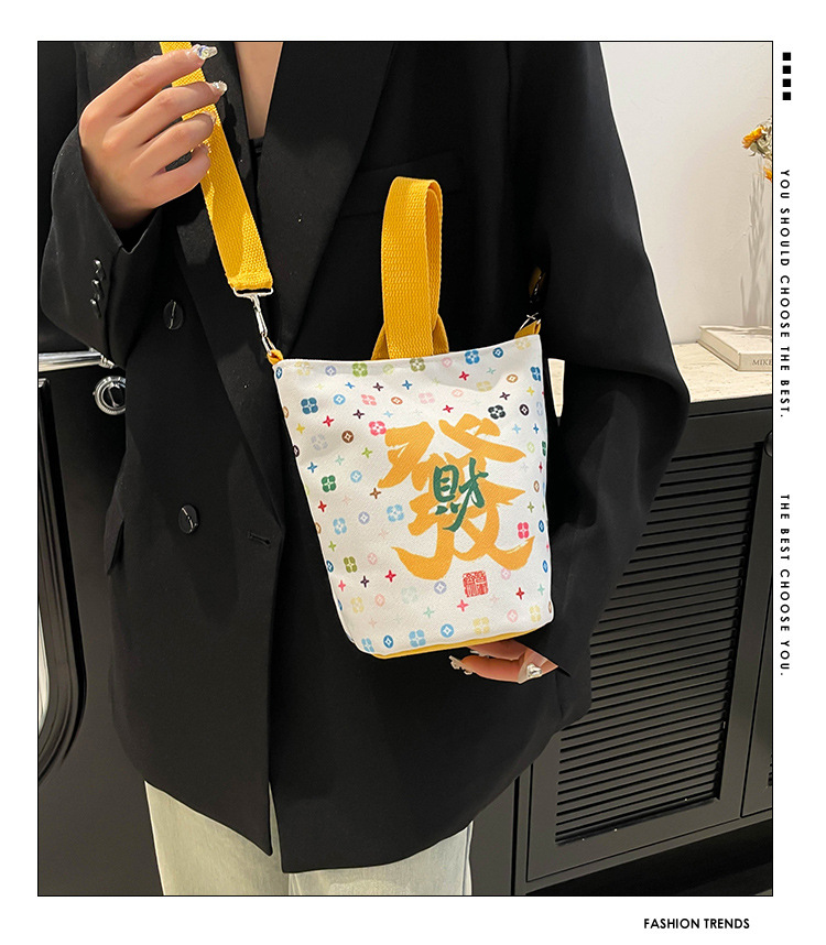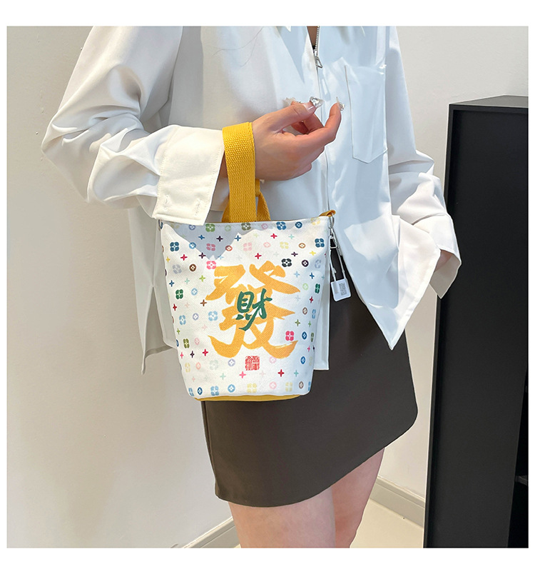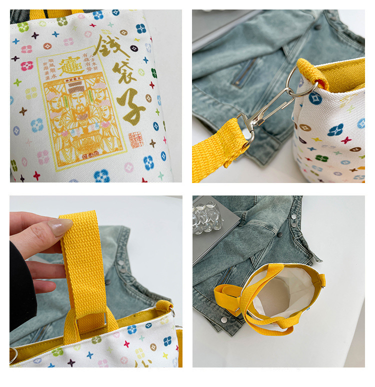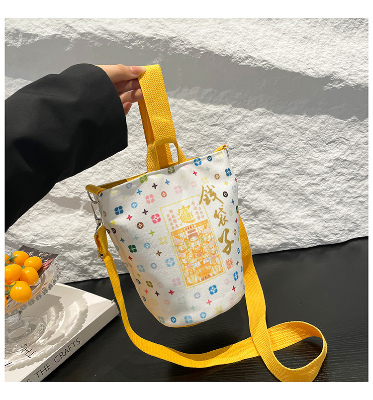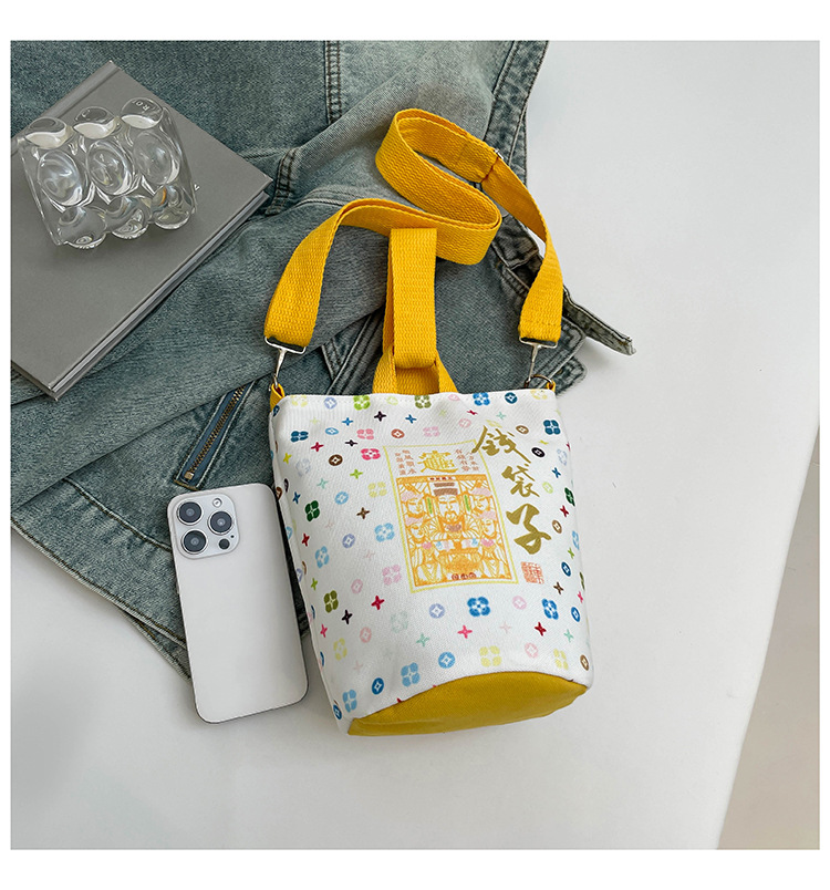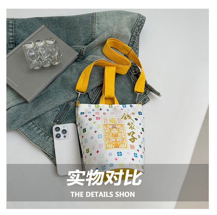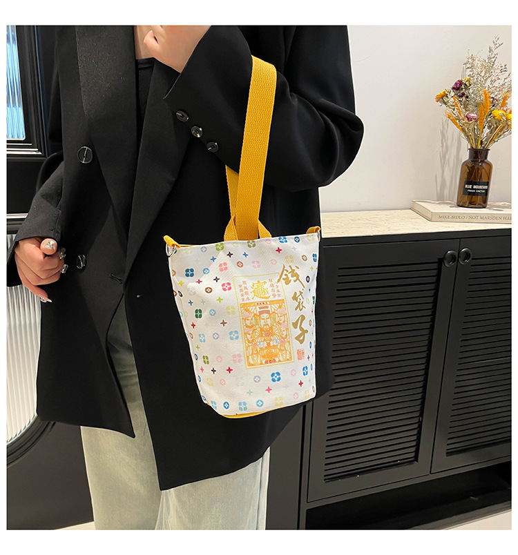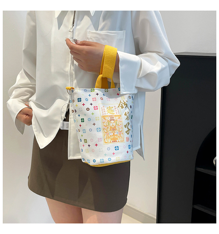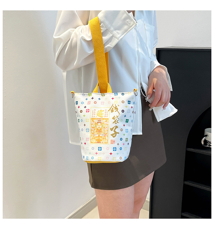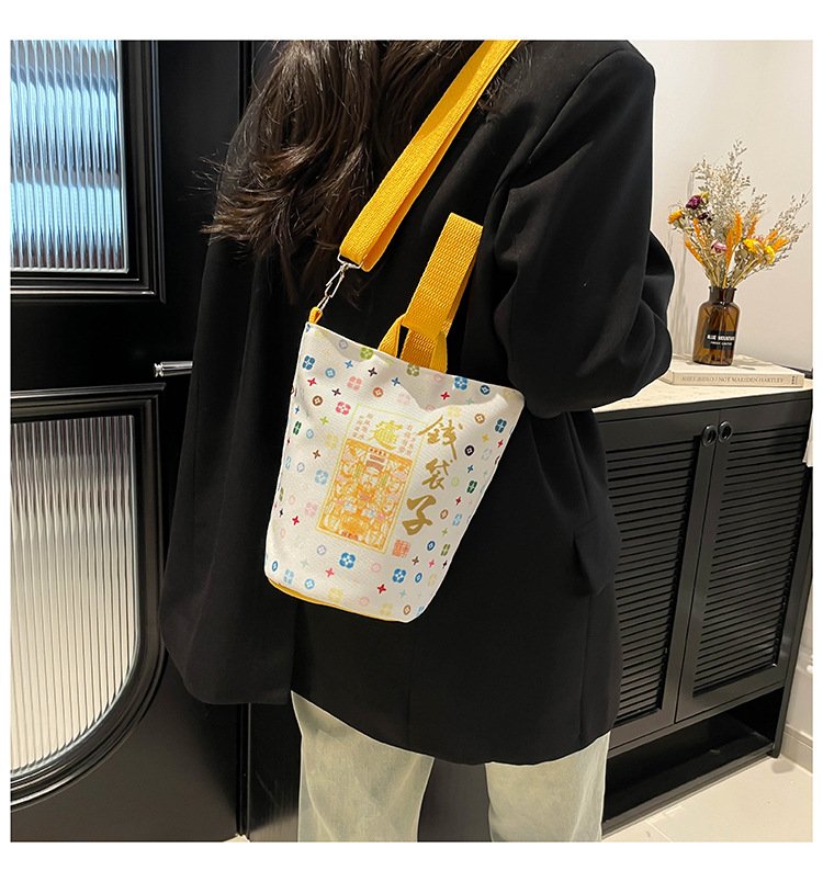 Lingyin Temple 머니 백 캔버스 버킷 백 2025 새로운 국가 패션 포춘 대용량 핸드백 인쇄 크로스 바디 백