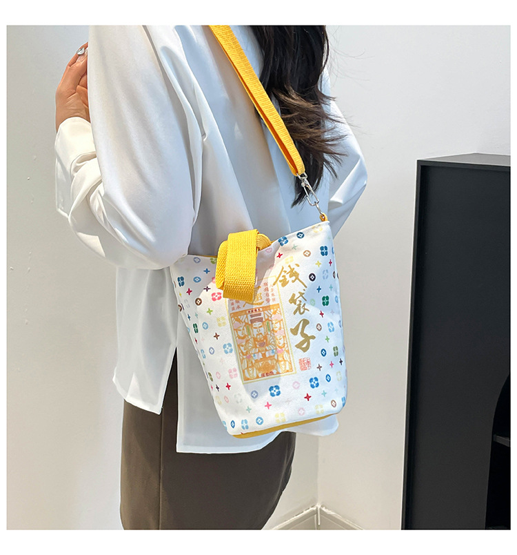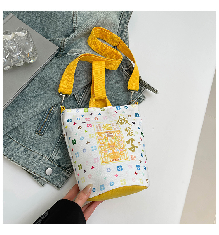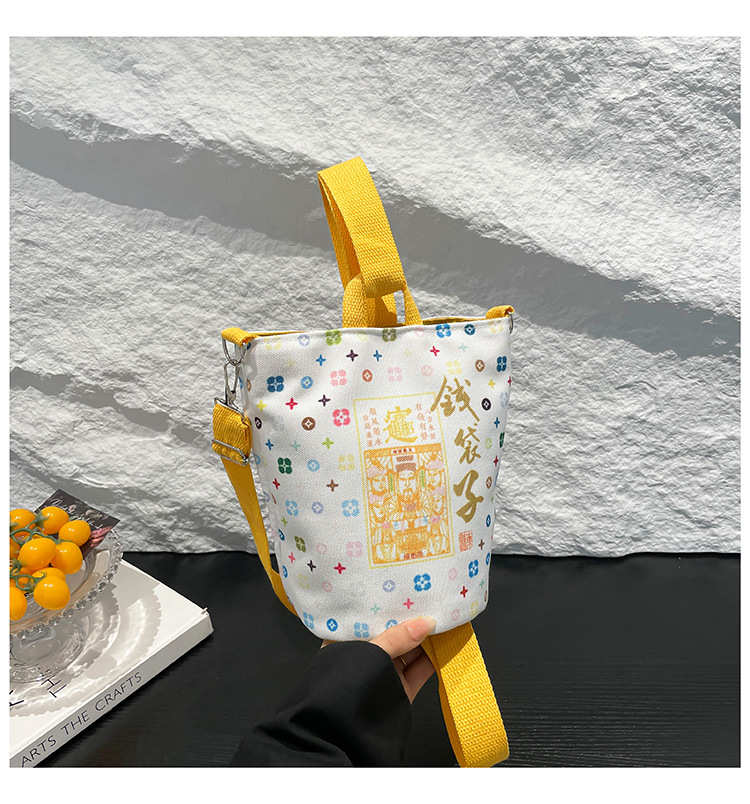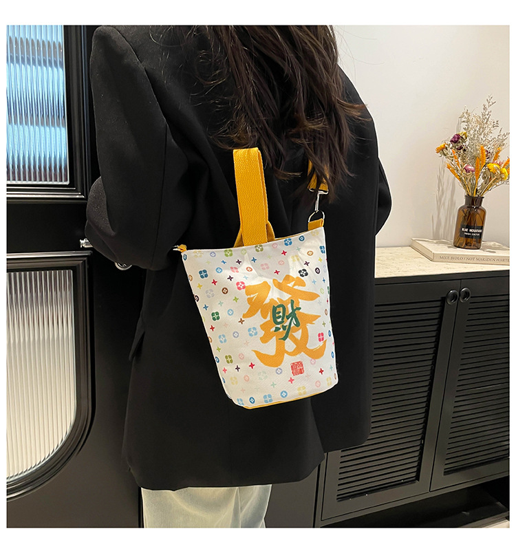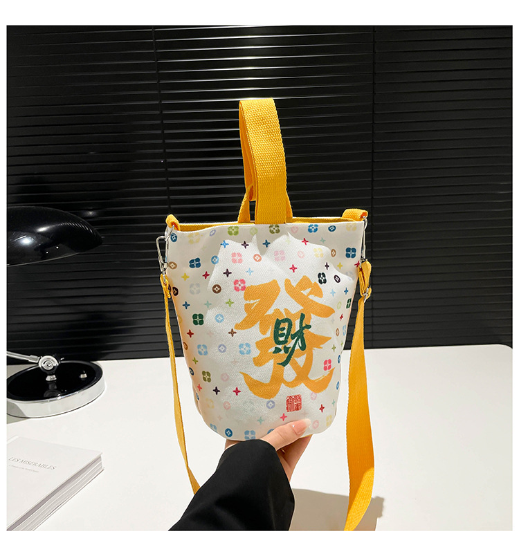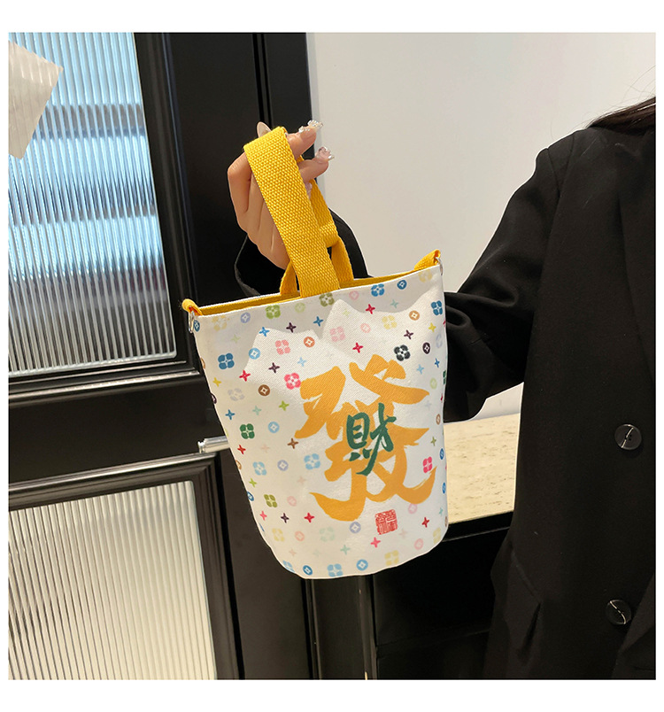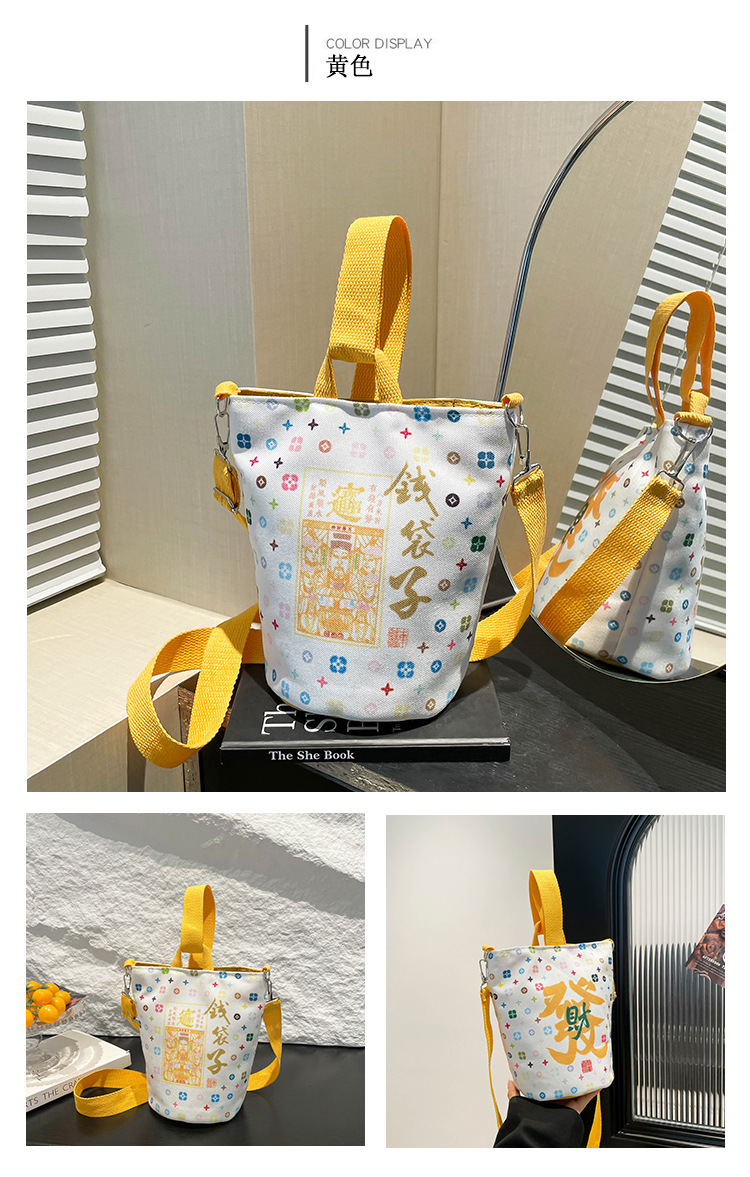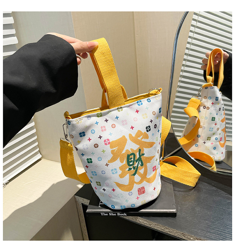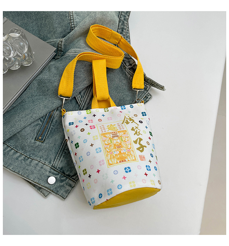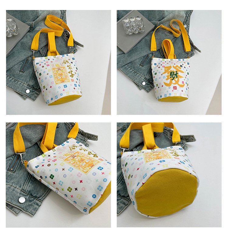 Lingyin Temple 머니 백 캔버스 버킷 백 2025 새로운 국가 패션 포춘 대용량 핸드백 인쇄 크로스 바디 백