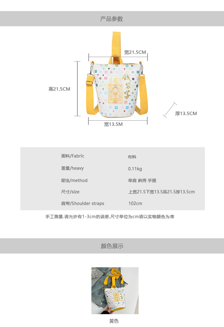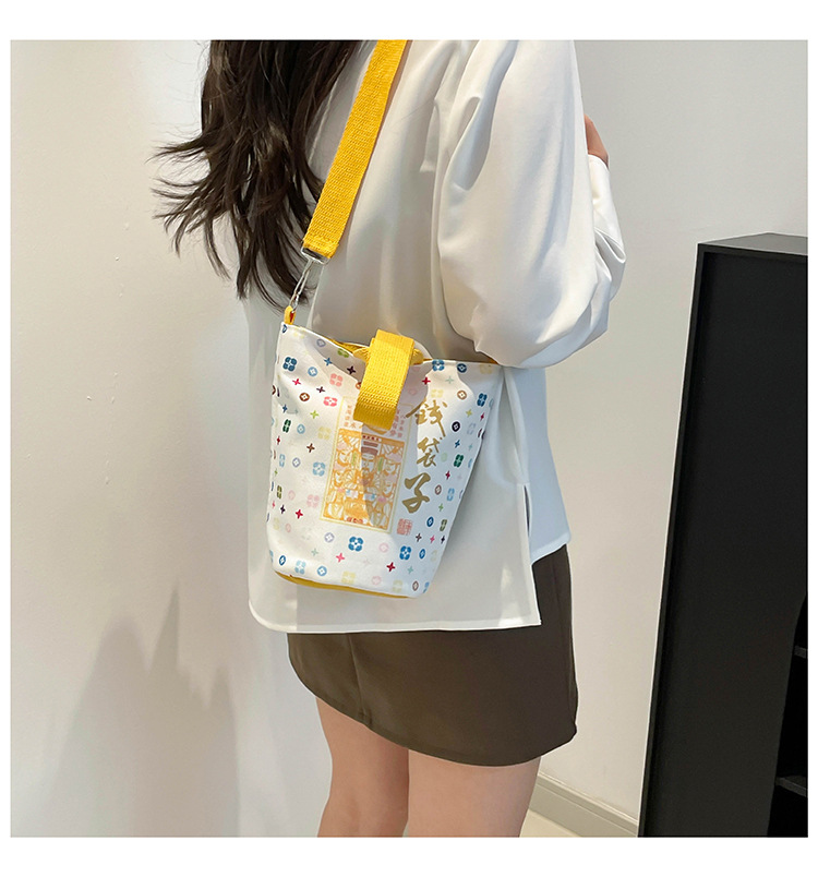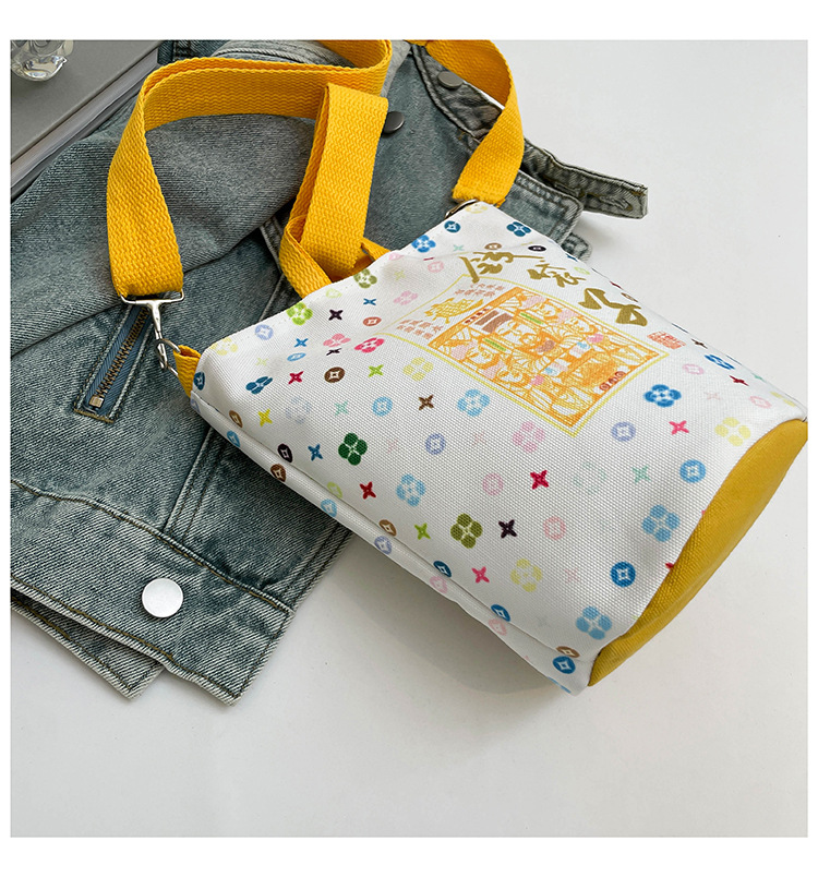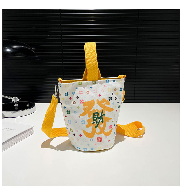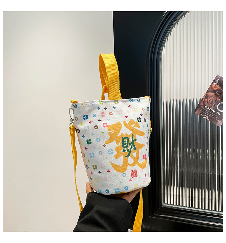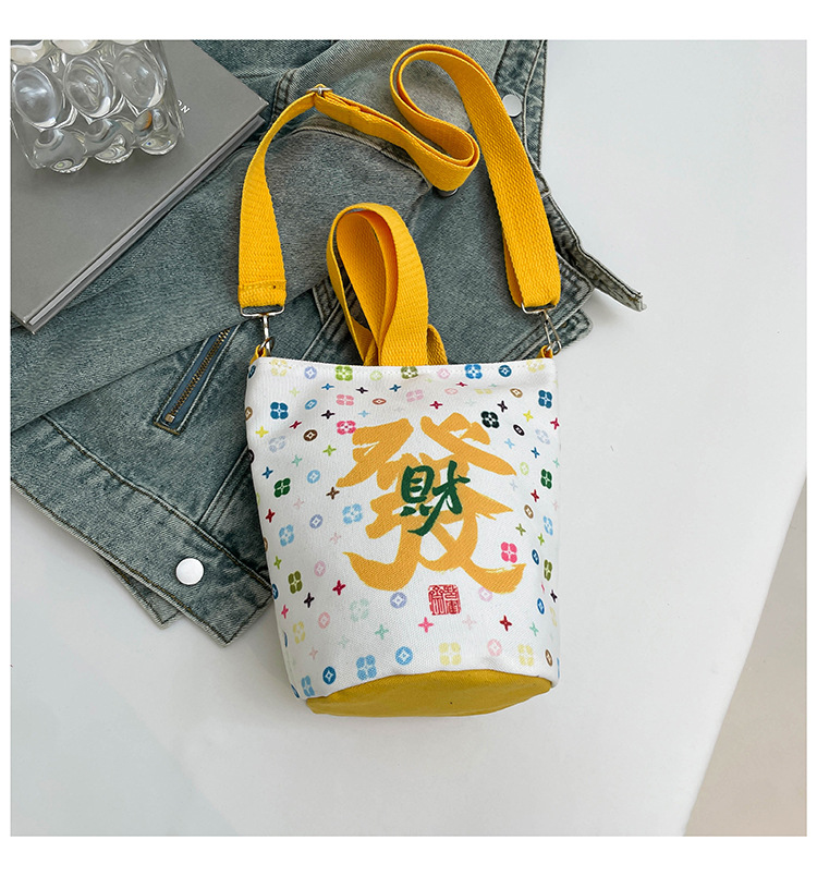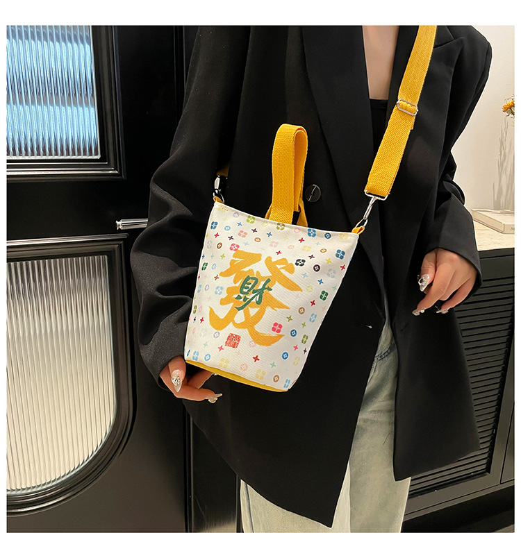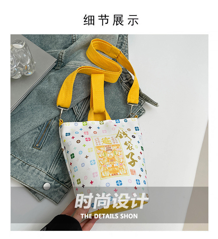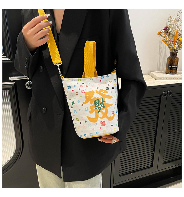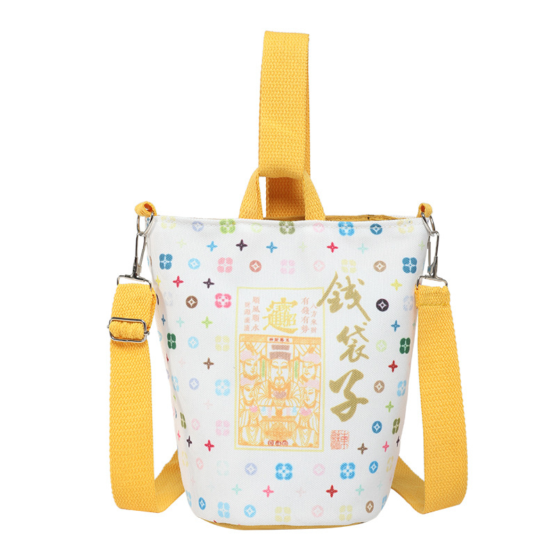 Lingyin Temple 머니 백 캔버스 버킷 백 2025 새로운 국가 패션 포춘 대용량 핸드백 인쇄 크로스 바디 백