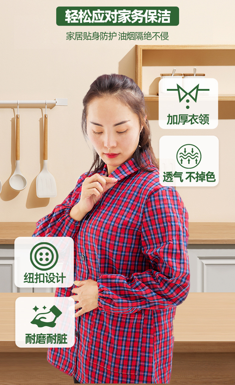 가을과 겨울 작업복 앞치마 여성 중형 및 짧은 주방 가구 외부 청소 노동 보호 전면 개방 버클 작업 옷 통기성 안티 더티