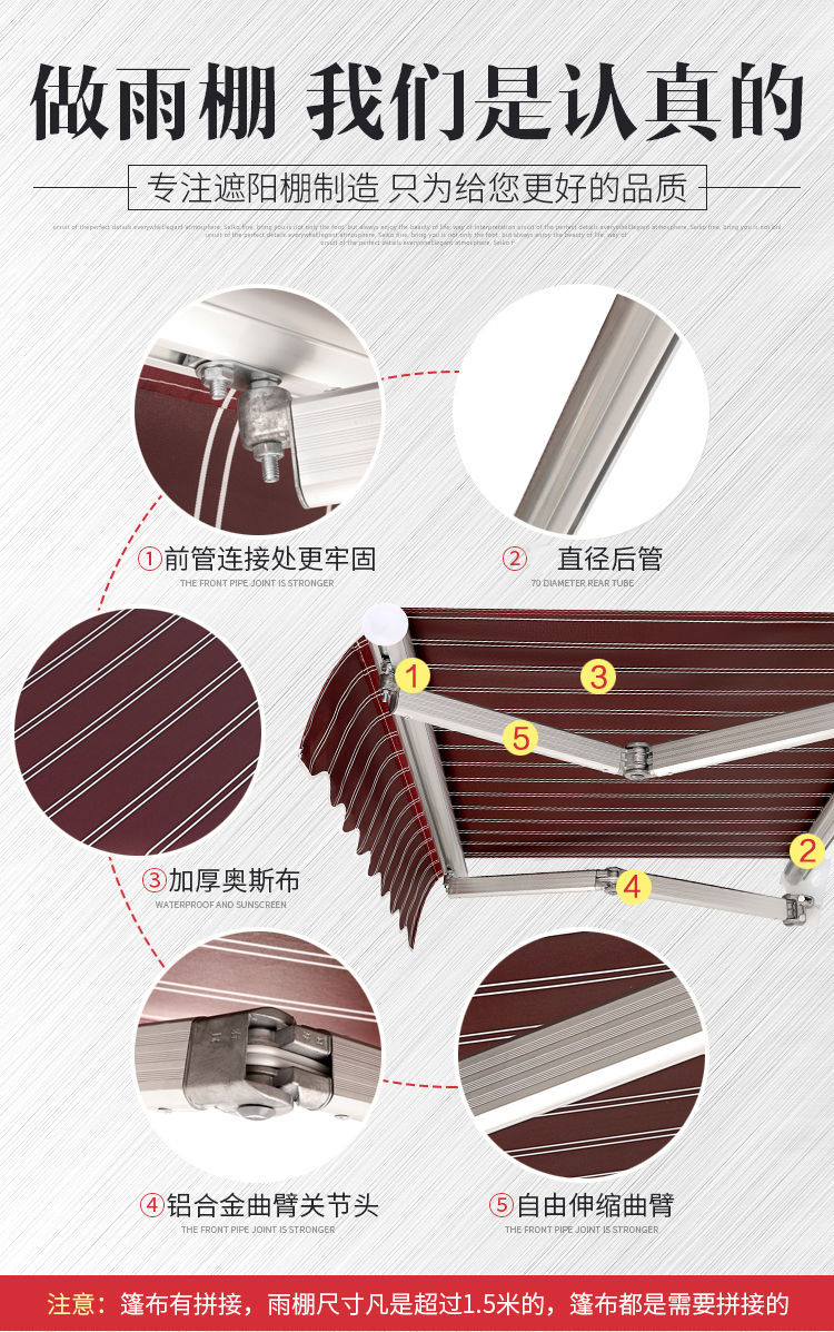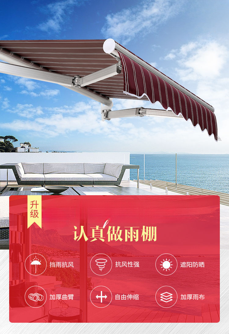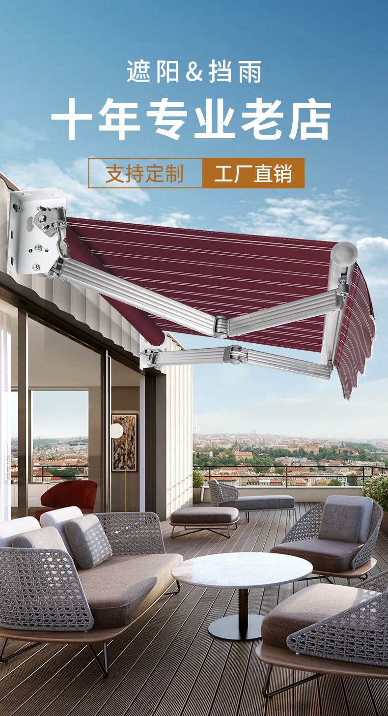 태양 그늘 접이식 수동 개폐식 전기 발코니 처마 가정용 방수 수축 캐노피 야외 안뜰 방수 캐노피