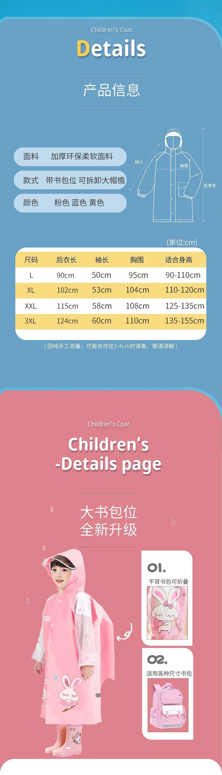 비옷 학생 학교 가방 비트 소년 소녀 어린이 판초 유치원 아기 초등학생