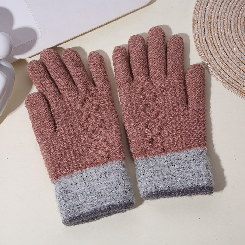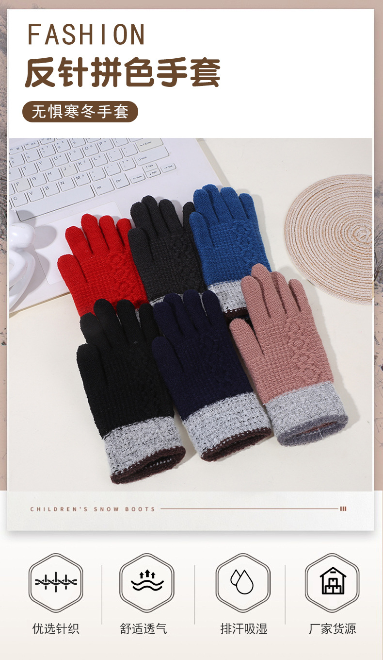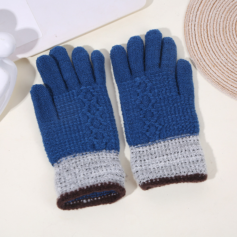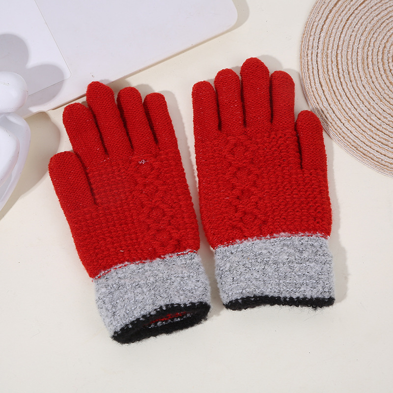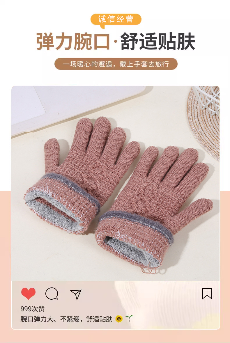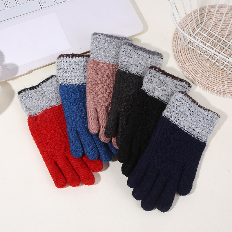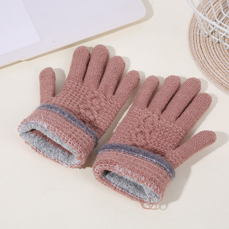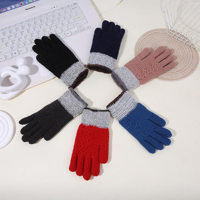 두꺼운 역바느질 배색 장갑, 겨울용 플러시 안감 야외 라이딩 및 타이핑용 장갑, 어린이용 보온 니트 장갑스토어 가기