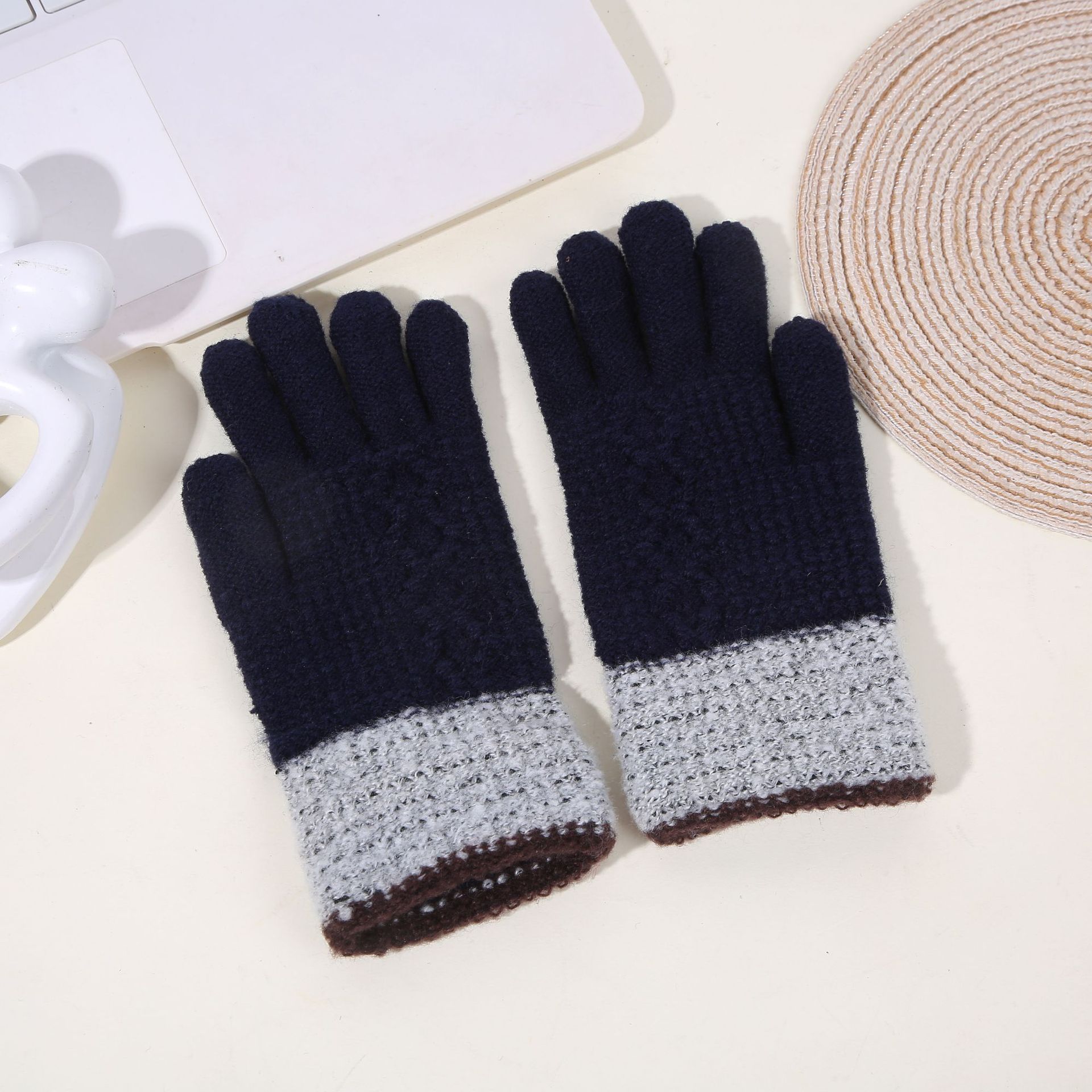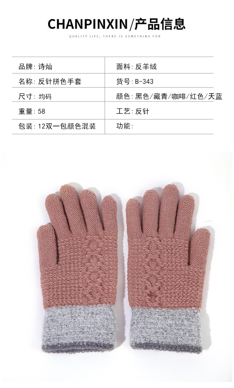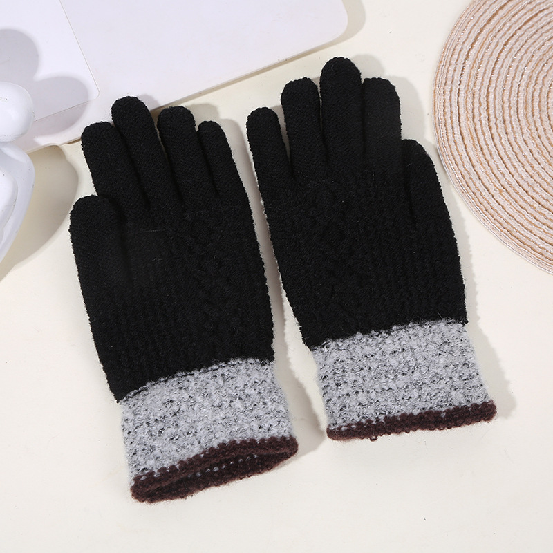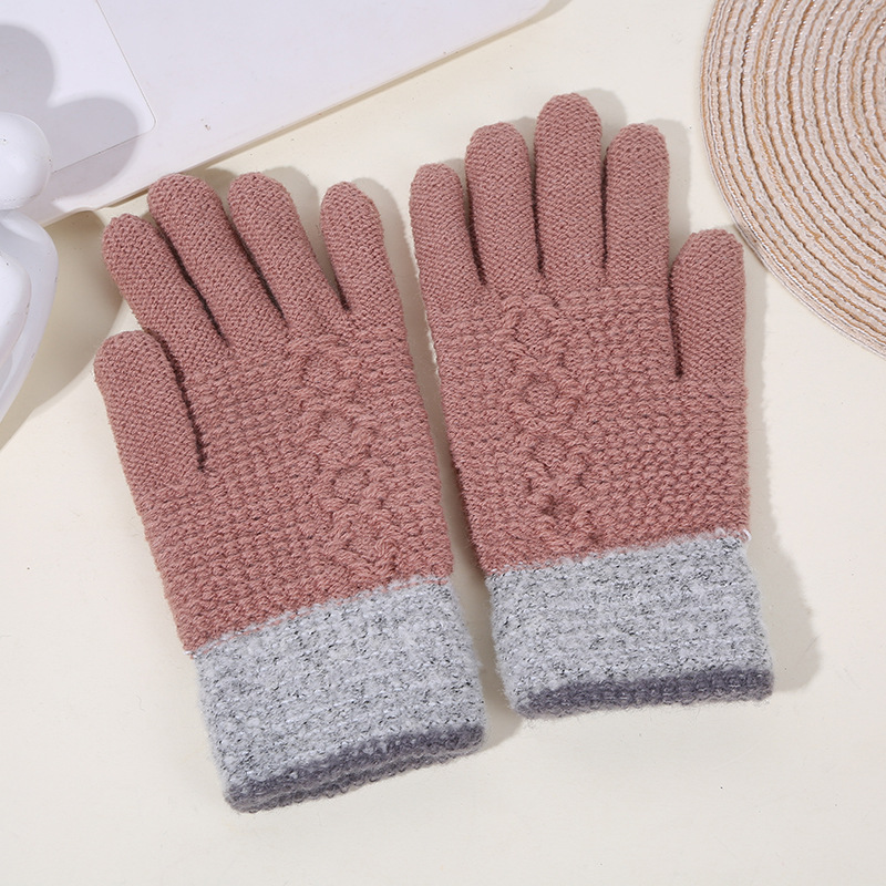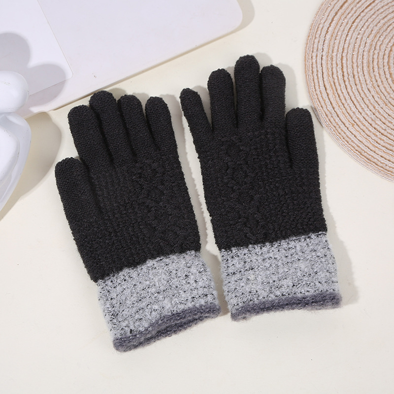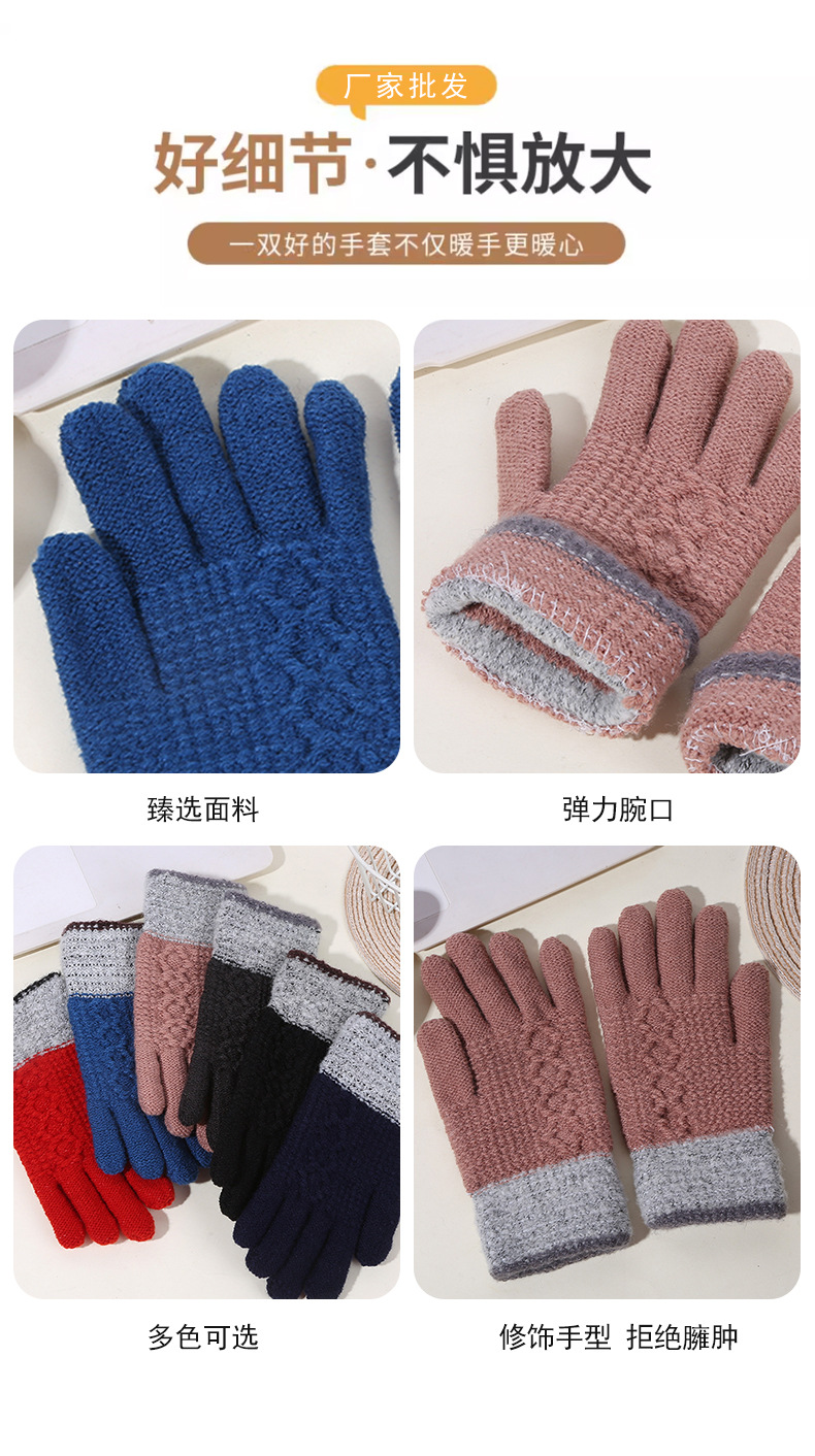 두꺼운 역바느질 배색 장갑, 겨울용 플러시 안감 야외 라이딩 및 타이핑용 장갑, 어린이용 보온 니트 장갑스토어 가기