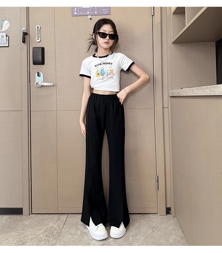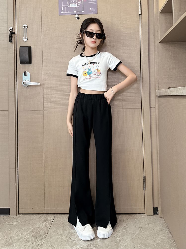 여자 여름 얇은 바지 2025 여름 의류 아동복 얼음 실크 슬림 마이크로 플레어 바지 모기 방지 바지 크로스 보더