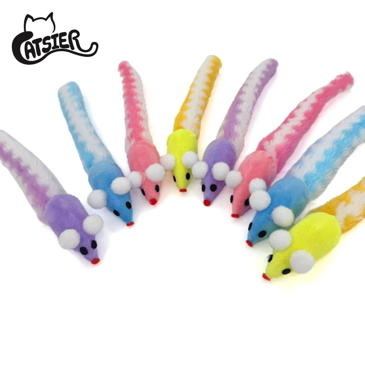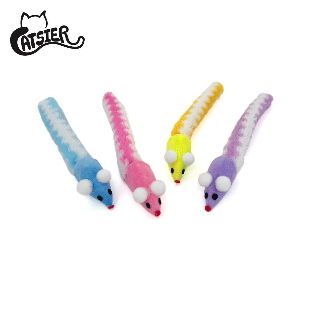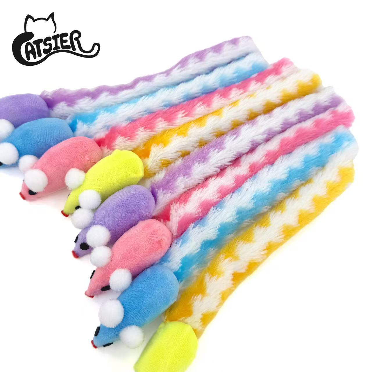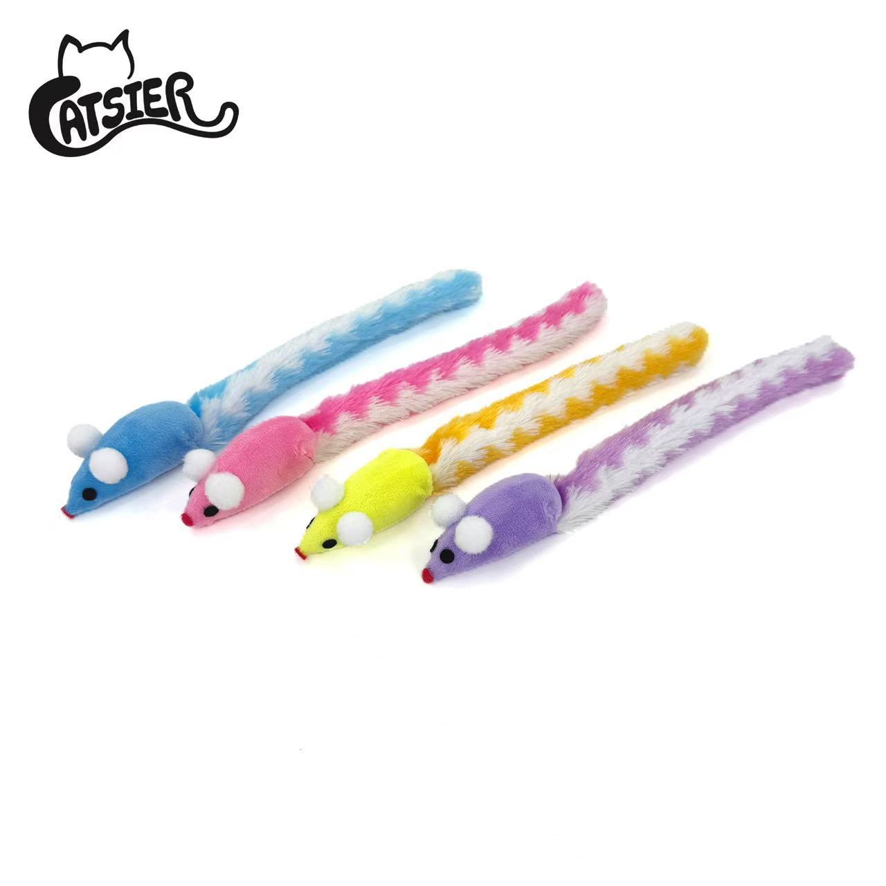 공장 재고 도매 컬러 긴 꼬리 울리는 종이 마우스 고양이 고양이 장난감 애완 동물 장난감을 걷는 고양이