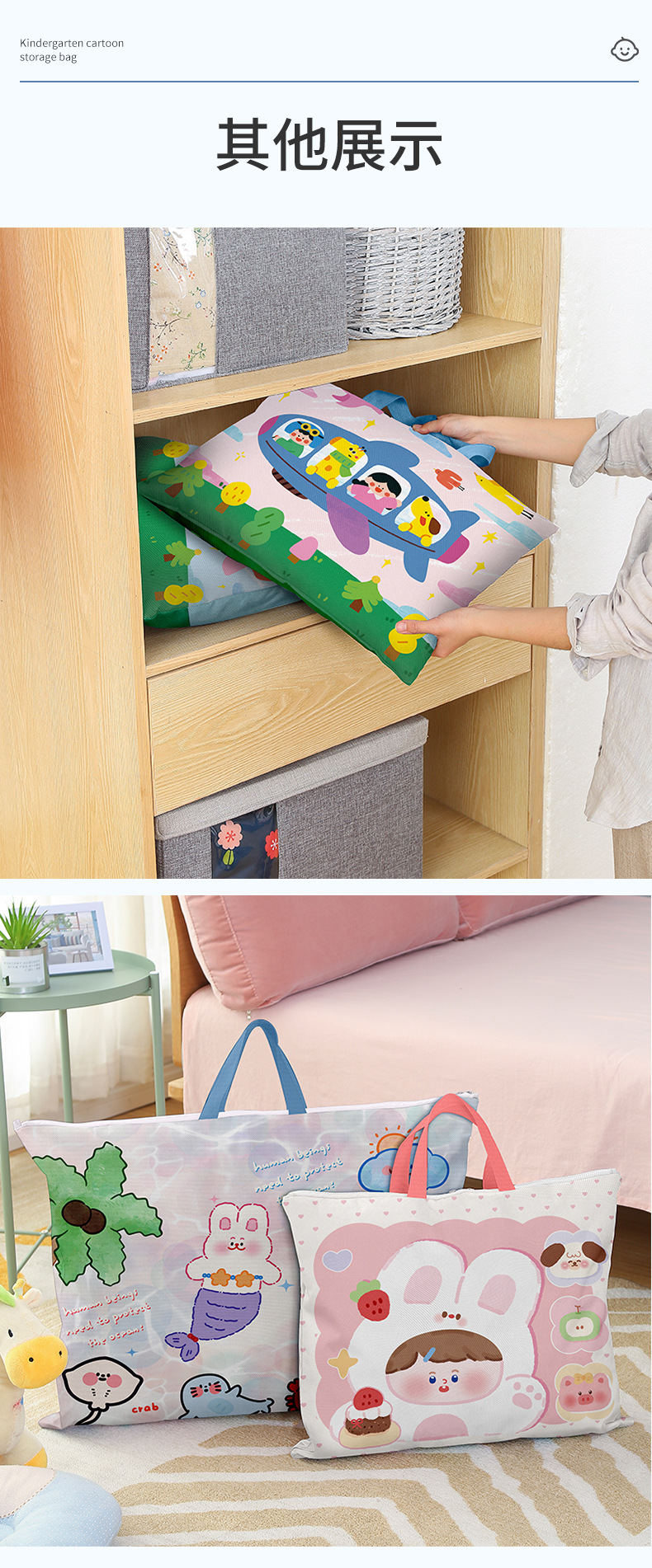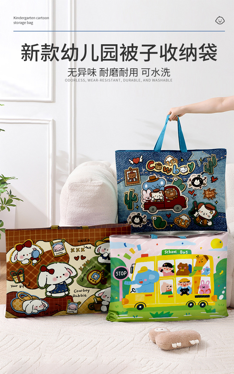 2025 새로운 유치원 귀여운 이불 보관 가방 어린이 유치원 침구 정리 휴대용 옥스포드 천 방수 가방스토어 가기