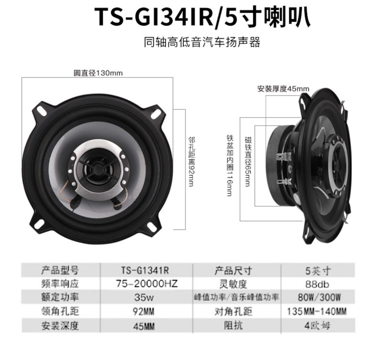 • 기아 k3 앞문 6.5inch 동축 쌍 + 와셔 플러그