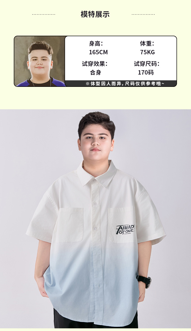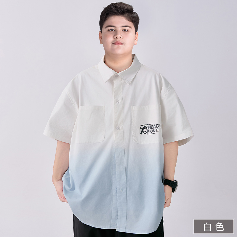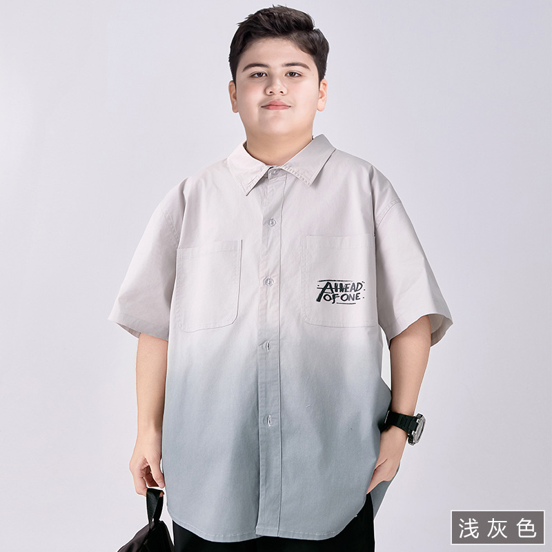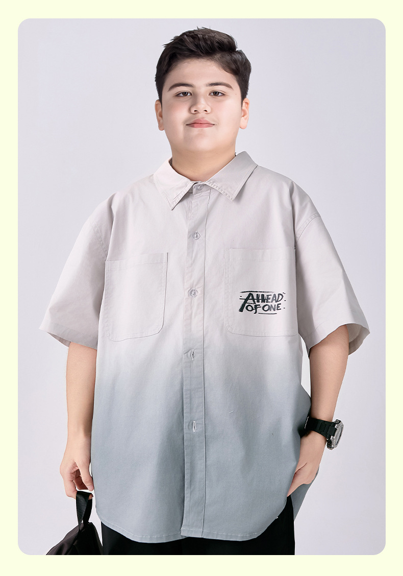 뚱뚱한 아동복 소년 반팔 셔츠 순면 플러스 뚱뚱한 여름 옷 2025 새로운 중학생 셔츠 중대형 어린이스토어 가기