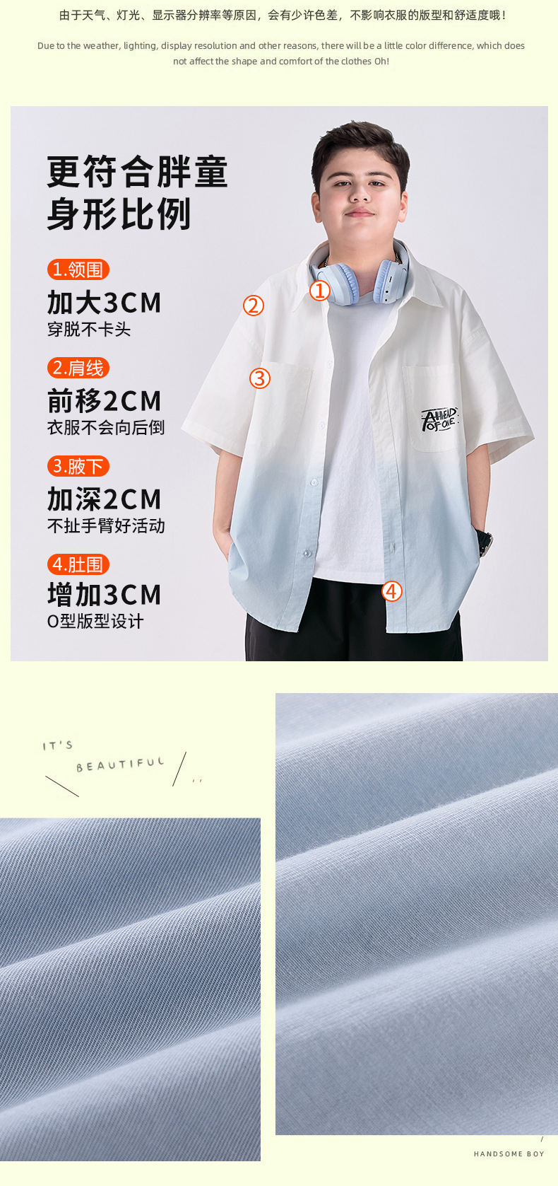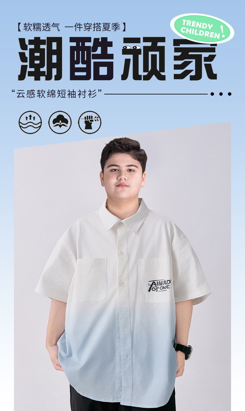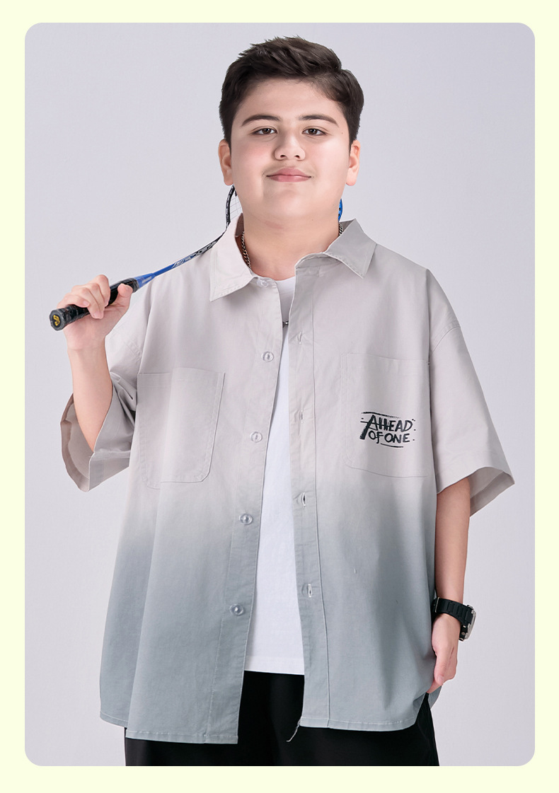 뚱뚱한 아동복 소년 반팔 셔츠 순면 플러스 뚱뚱한 여름 옷 2025 새로운 중학생 셔츠 중대형 어린이스토어 가기