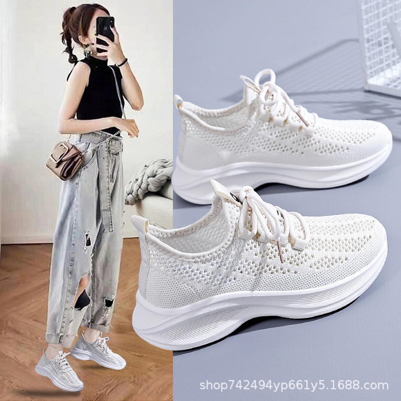 2025 플라이 위브 패션 캐주얼 미끄럼 방지 운동화 여성 한국어 버전 트렌디 소프트 솔 여성 신발 여름 고급 다용도스토어 가기