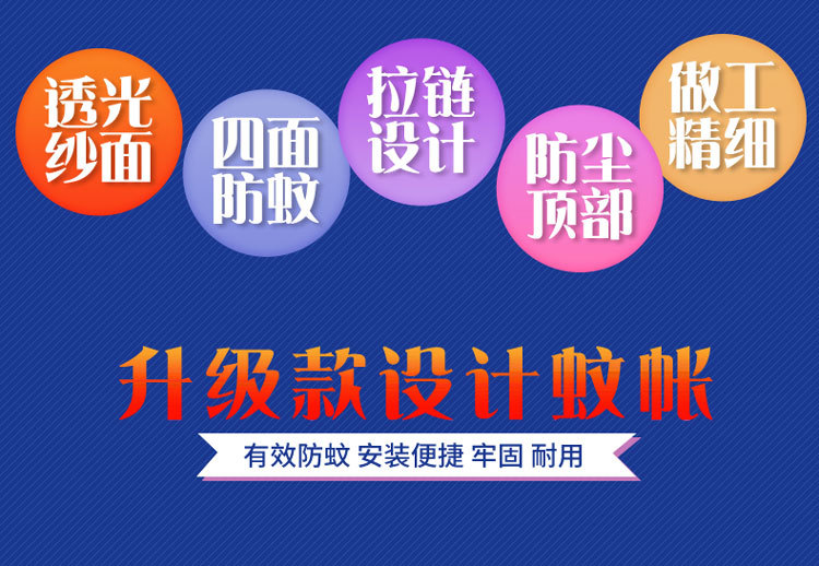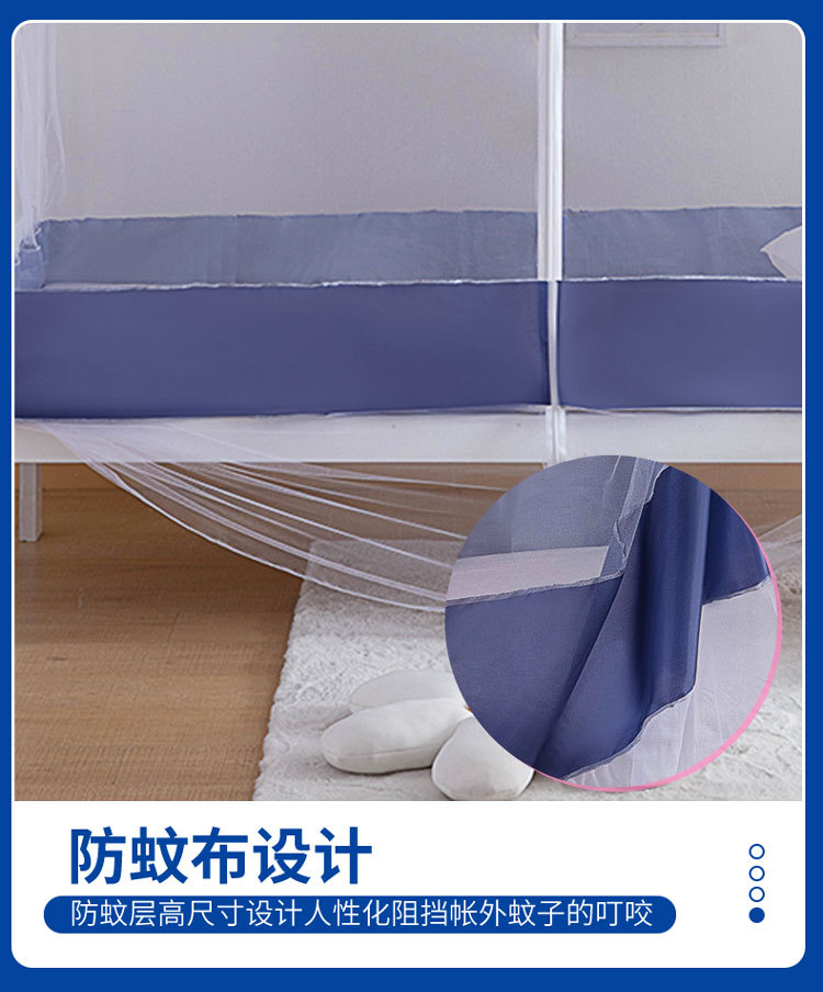 • 네이비 블루 침대 커튼 모기장 통합 지퍼 모델 특수 밀도