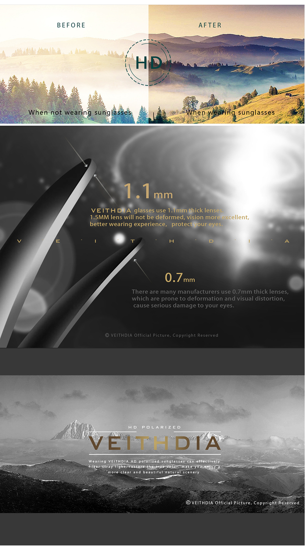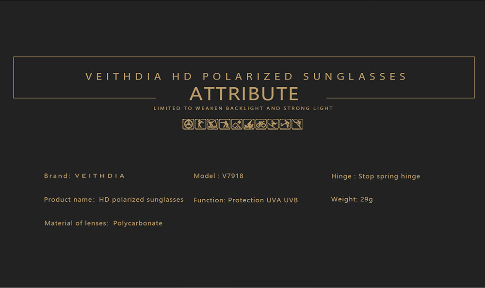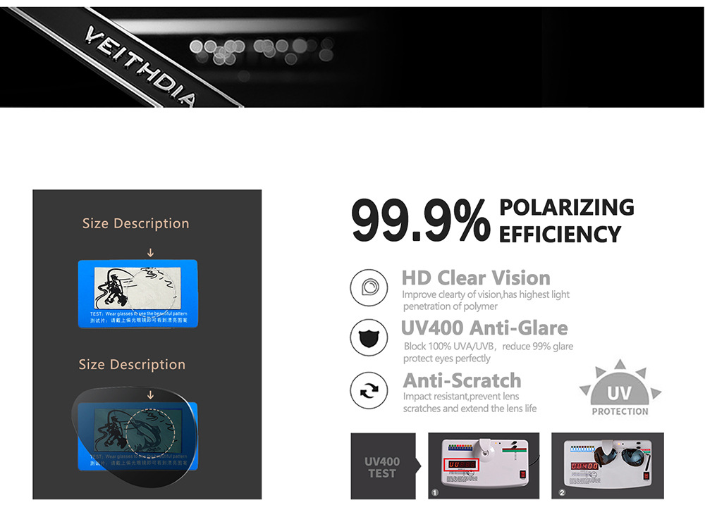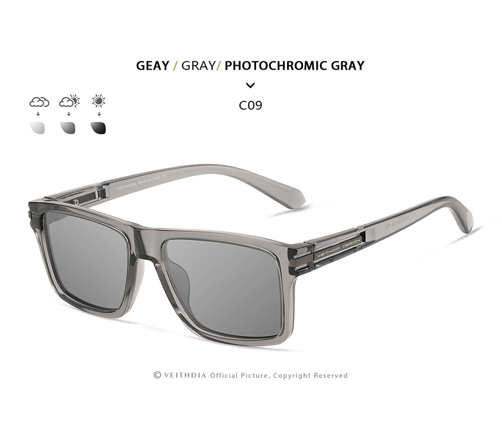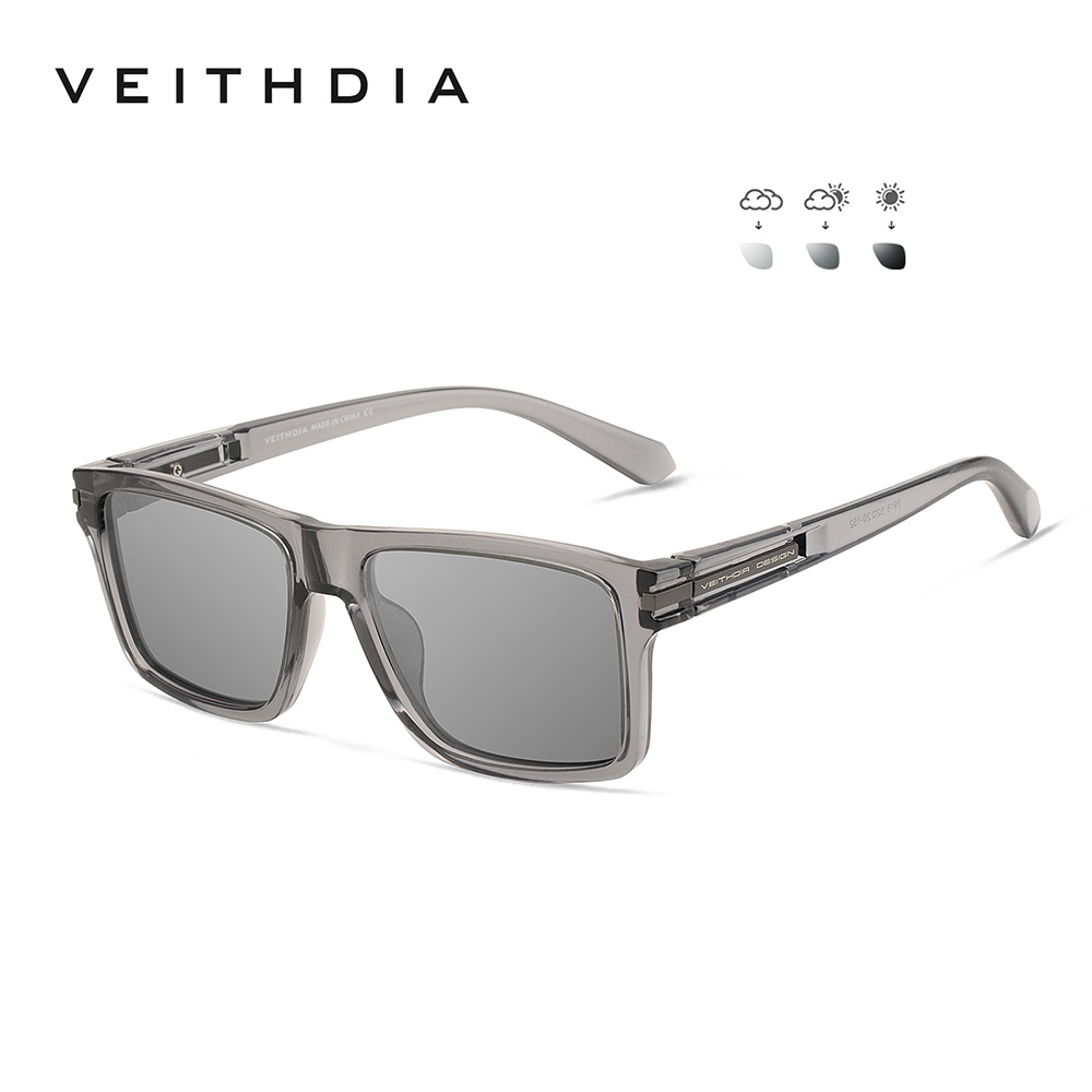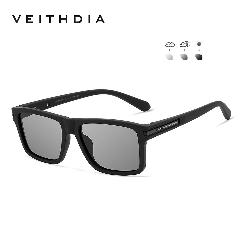 • VEITHDIA 블랙 프레임 + 블랙 액세서리 + 색상이 변하는 그레이 렌즈