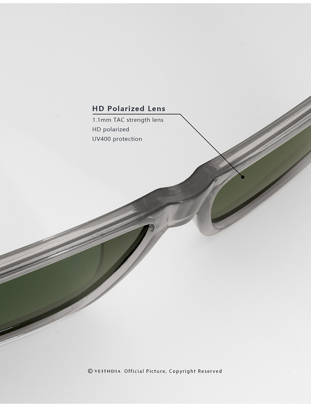 • VEITHDIA 브라이트 그레이 프레임 + 건 그레이 액세서리 + 다크 그린 렌즈