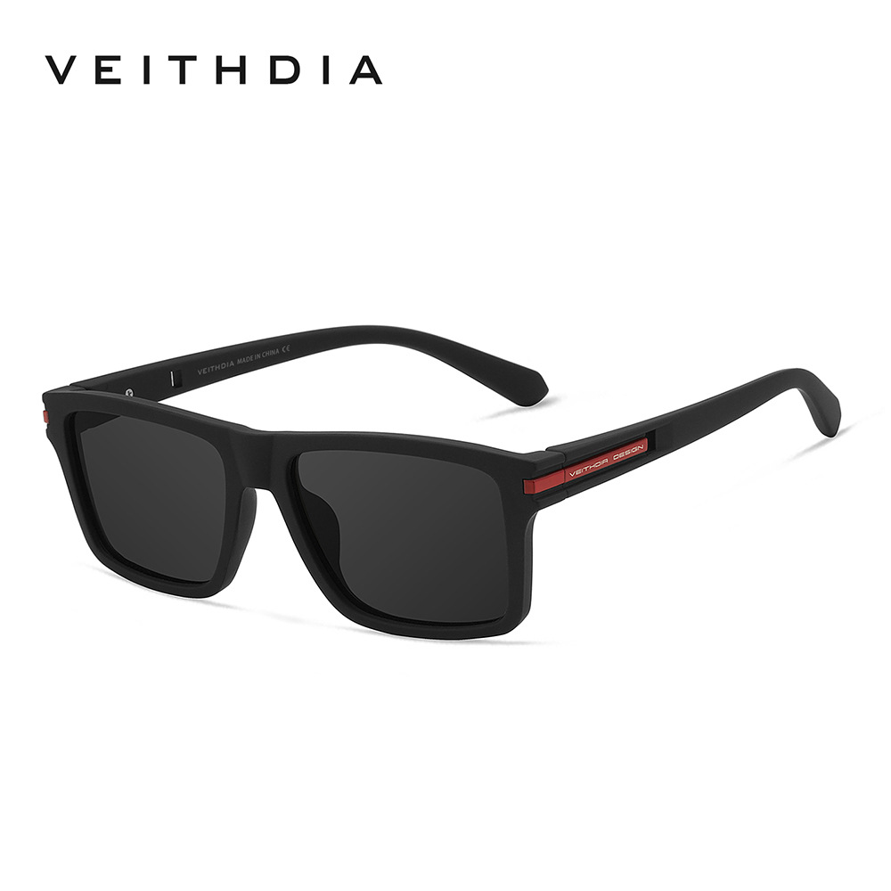 • VEITHDIA 블랙 프레임 + 레드 액세서리 + 그레이 렌즈