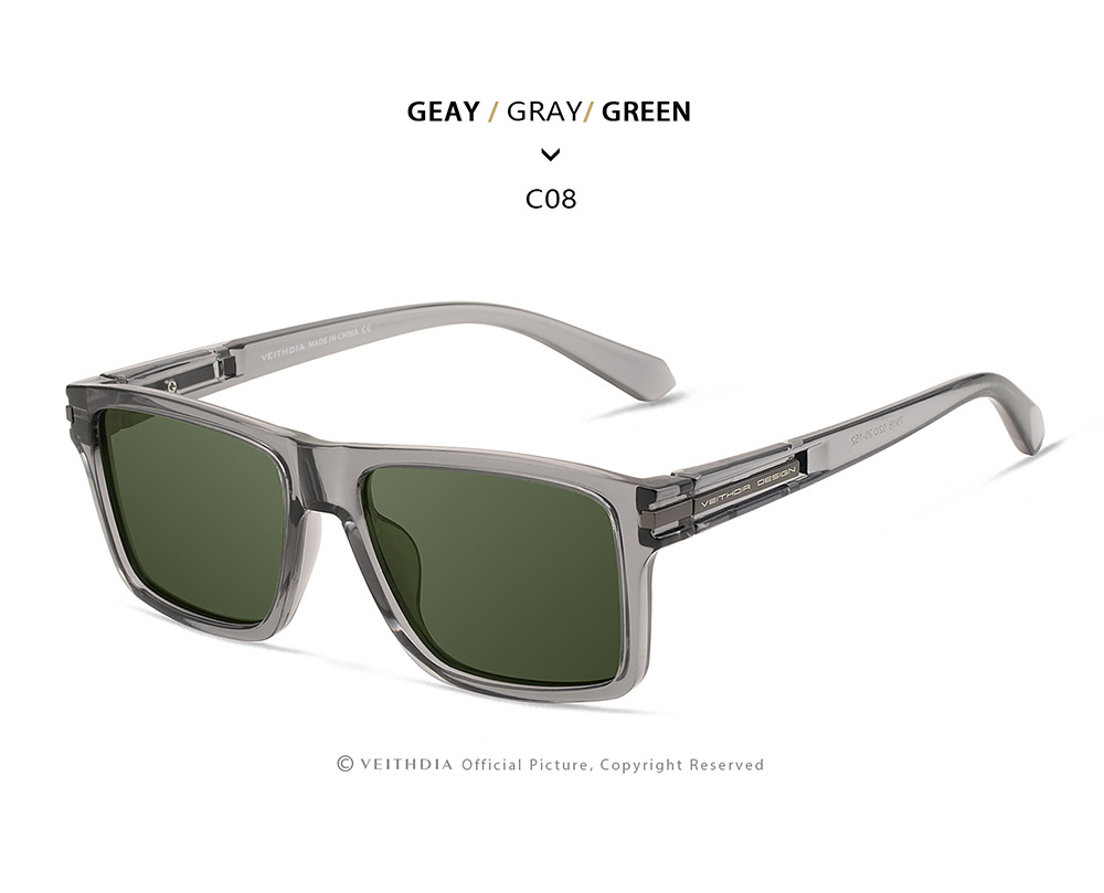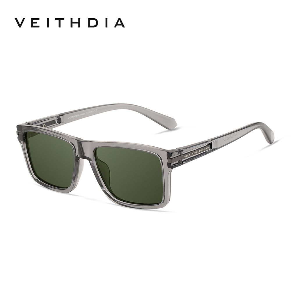 • VEITHDIA 브라이트 그레이 프레임 + 건 그레이 액세서리 + 다크 그린 렌즈 + 안경 케이스 세트