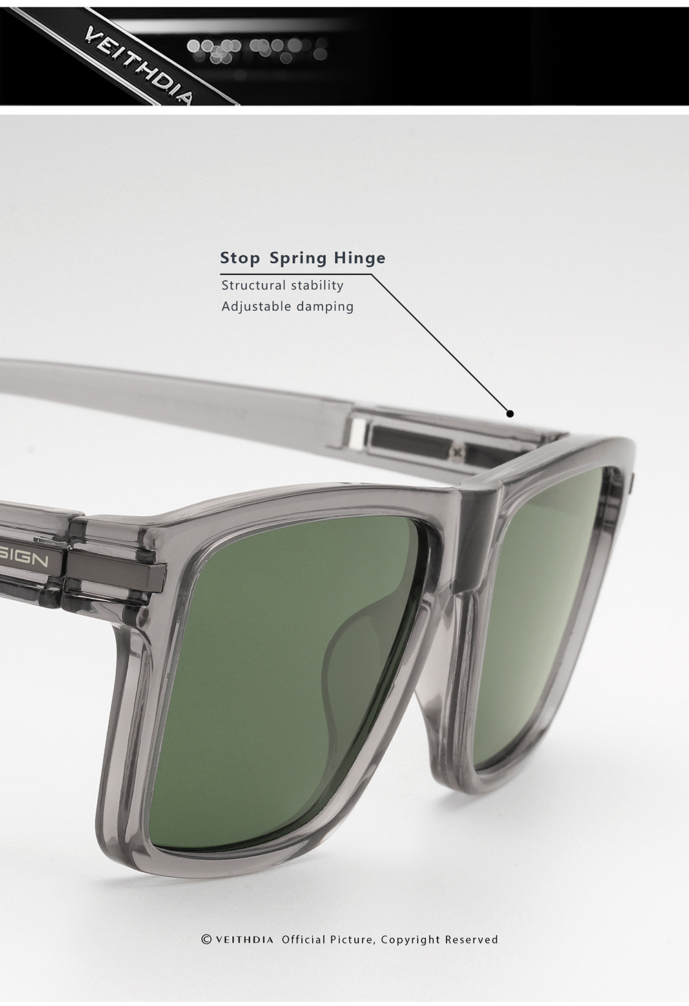 • VEITHDIA 블랙 프레임 + 블랙 액세서리 + 그레이 렌즈