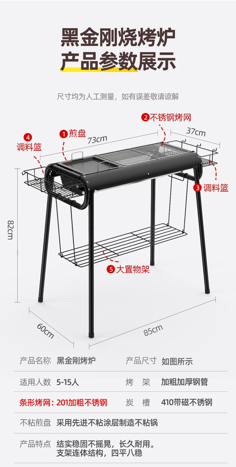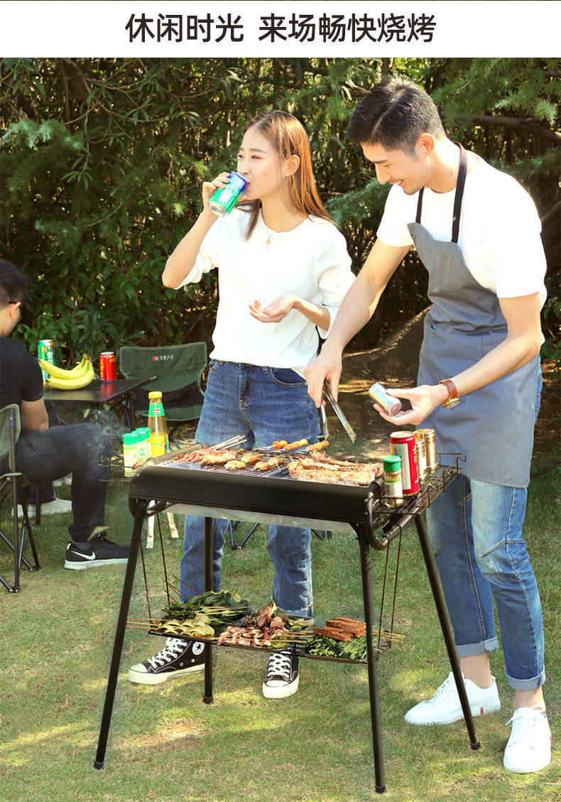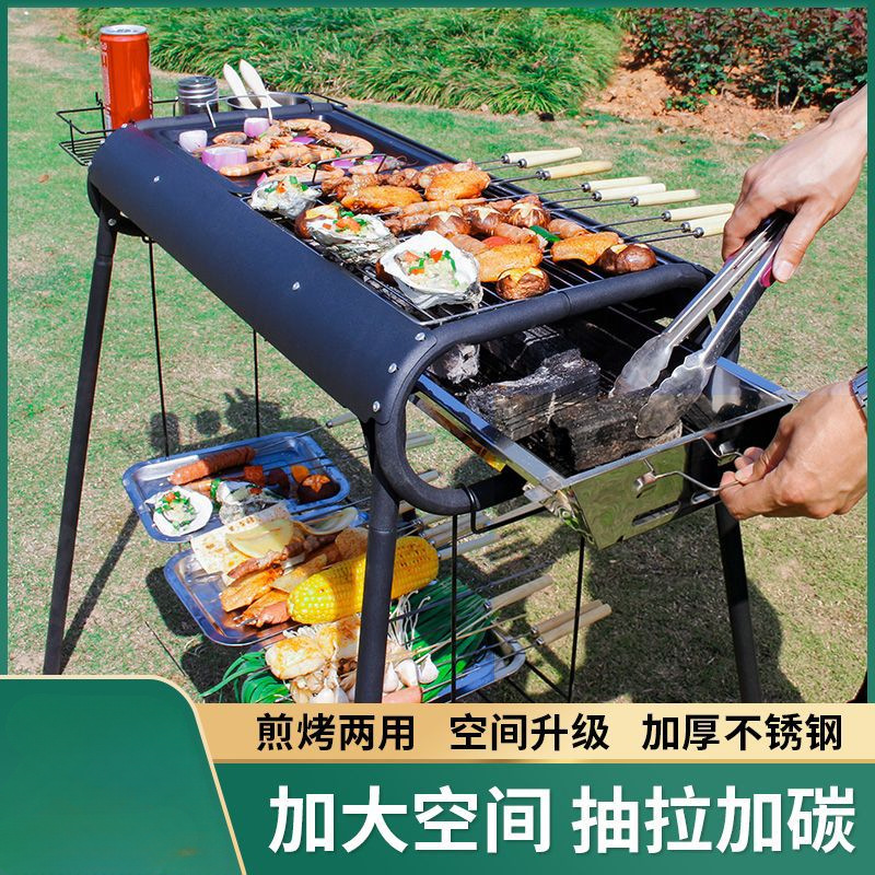 바베큐 선반 가정용 야외 대형 스테인레스 스틸 바베큐 그릴 탄소 그릴 야외 숯 그릴 전체 도구 바베큐 세트