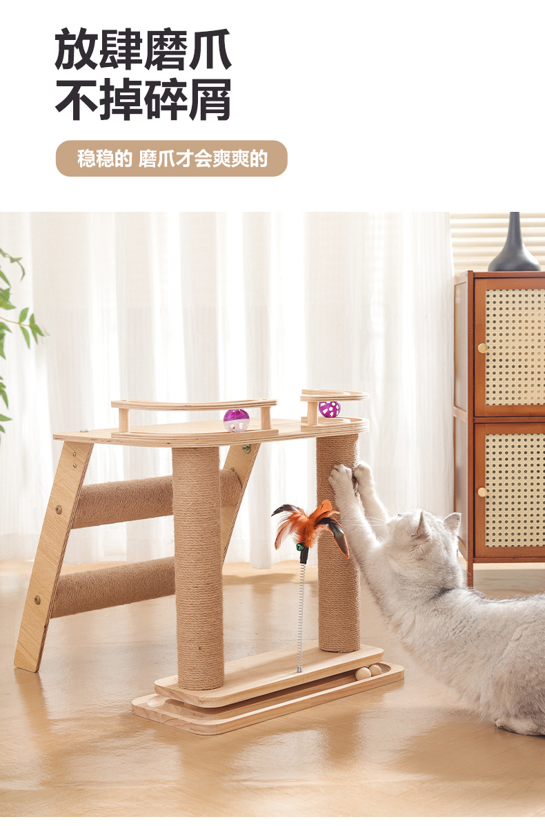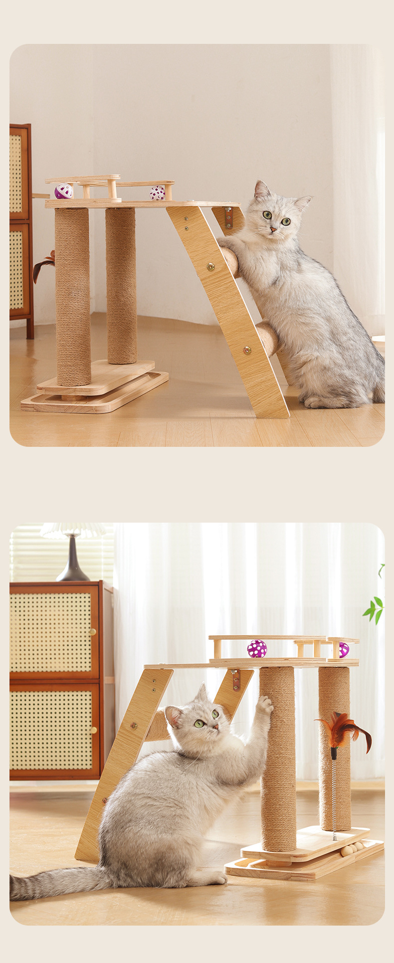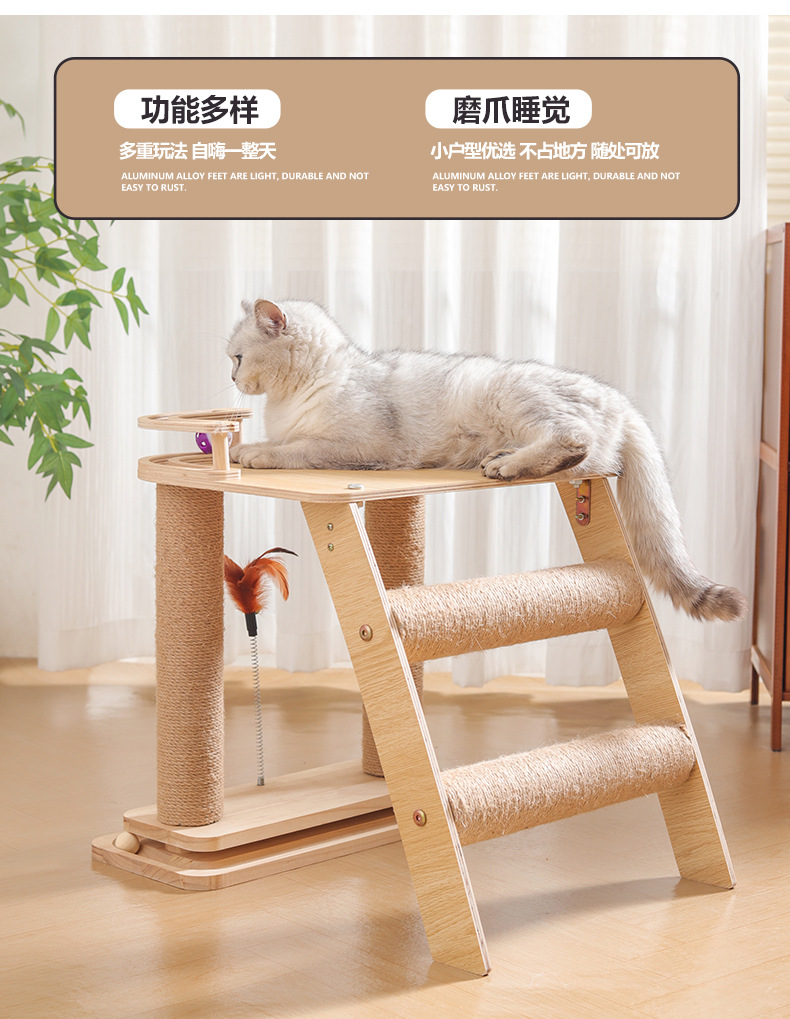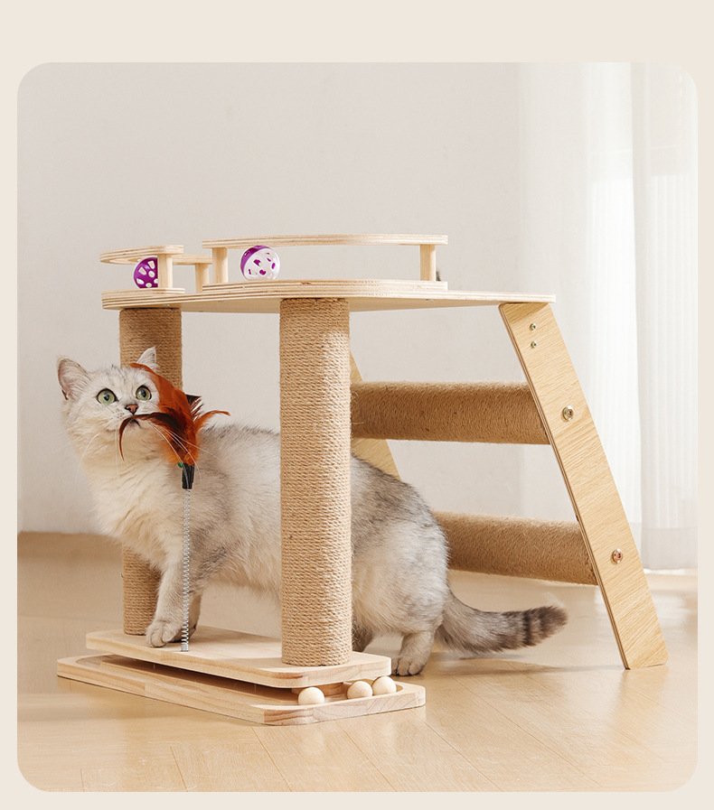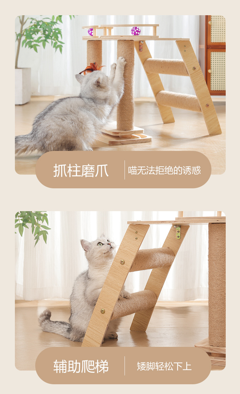 고양이 등반 랙 솔리드 우드 점프 플랫폼 고양이 스크래치 보드 고양이 둥지 통합 연삭 발톱 고양이 장난감 벨 볼 애완 동물 용품