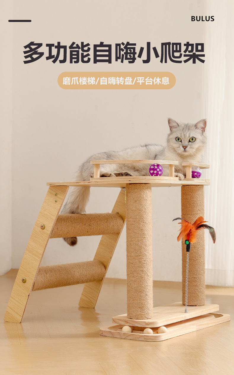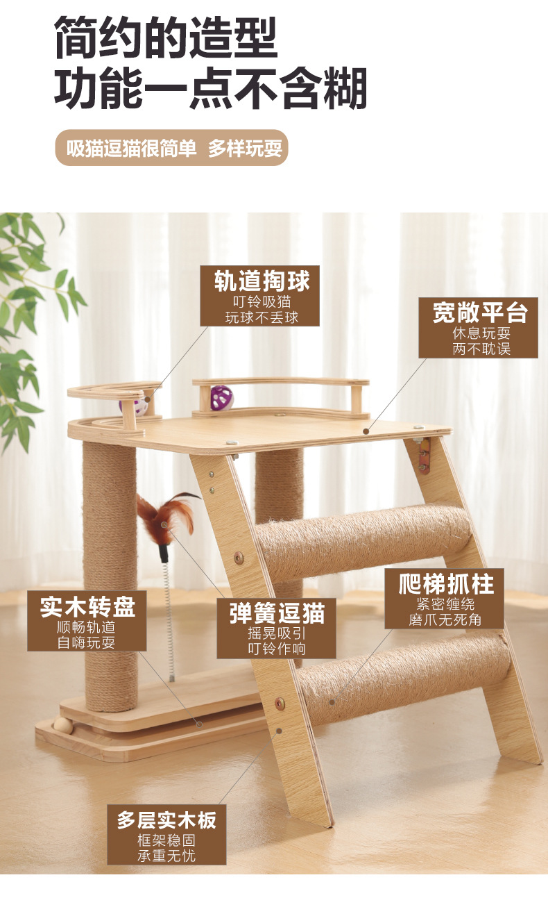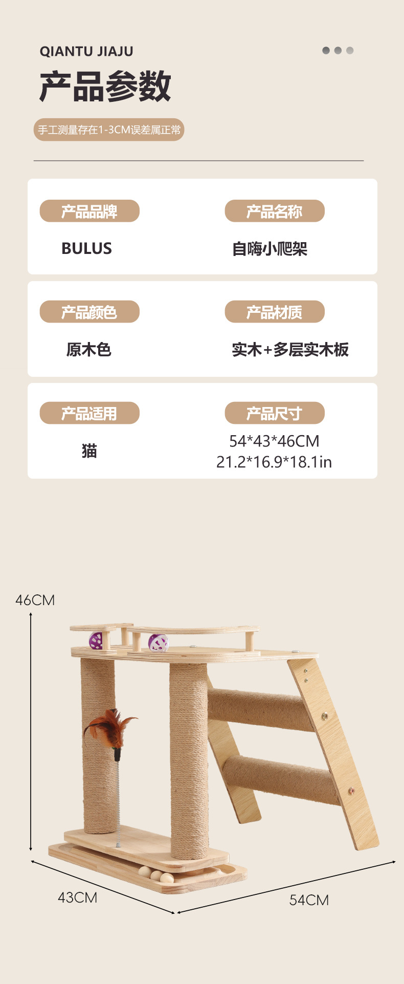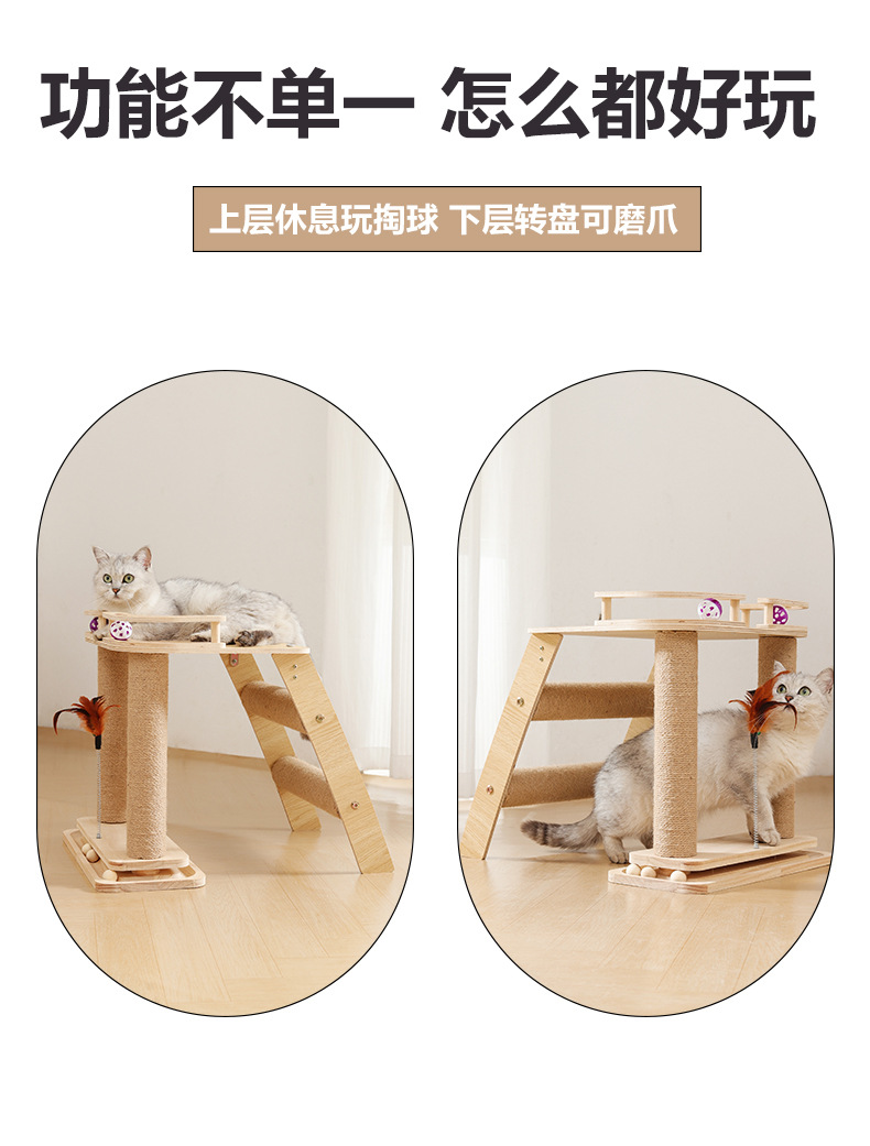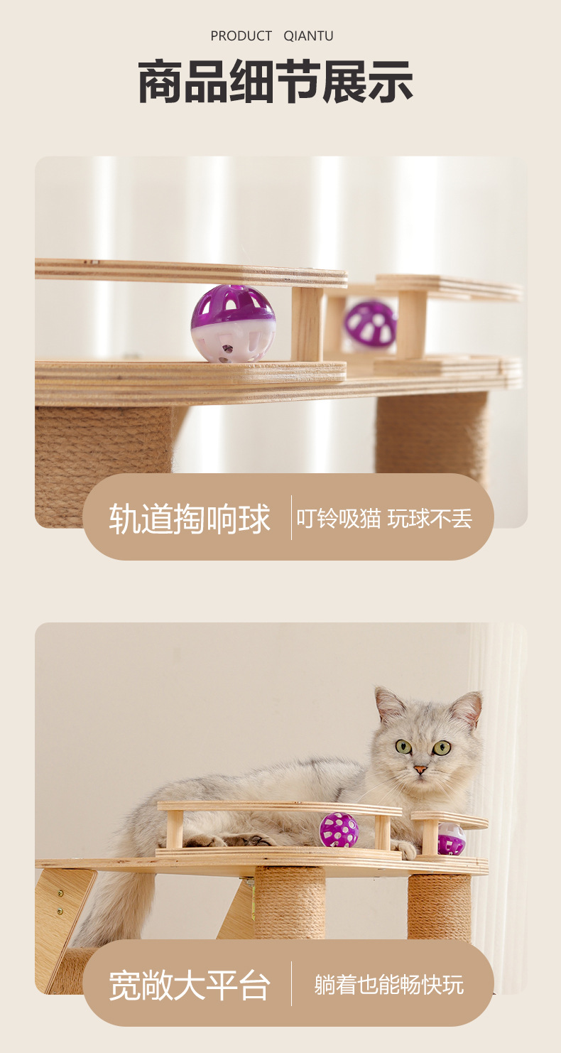 고양이 등반 랙 솔리드 우드 점프 플랫폼 고양이 스크래치 보드 고양이 둥지 통합 연삭 발톱 고양이 장난감 벨 볼 애완 동물 용품
