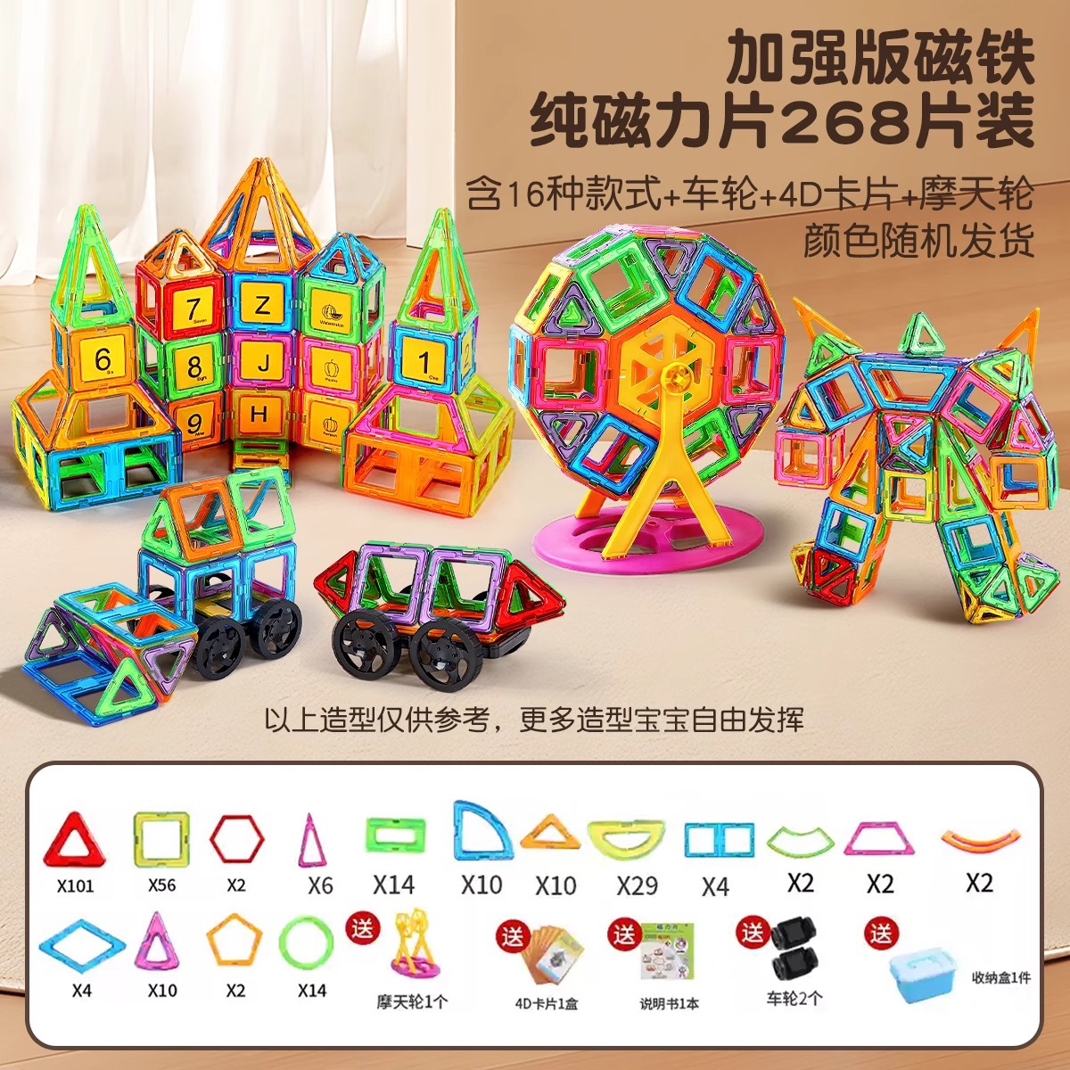 • 순수 자석정 268개 [무료 바퀴 + 관람차 + 4D 카드 + 보관함]