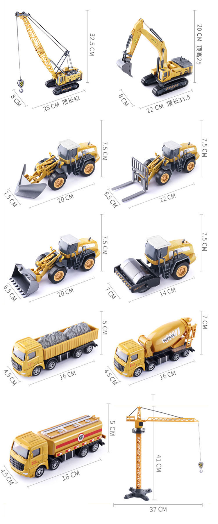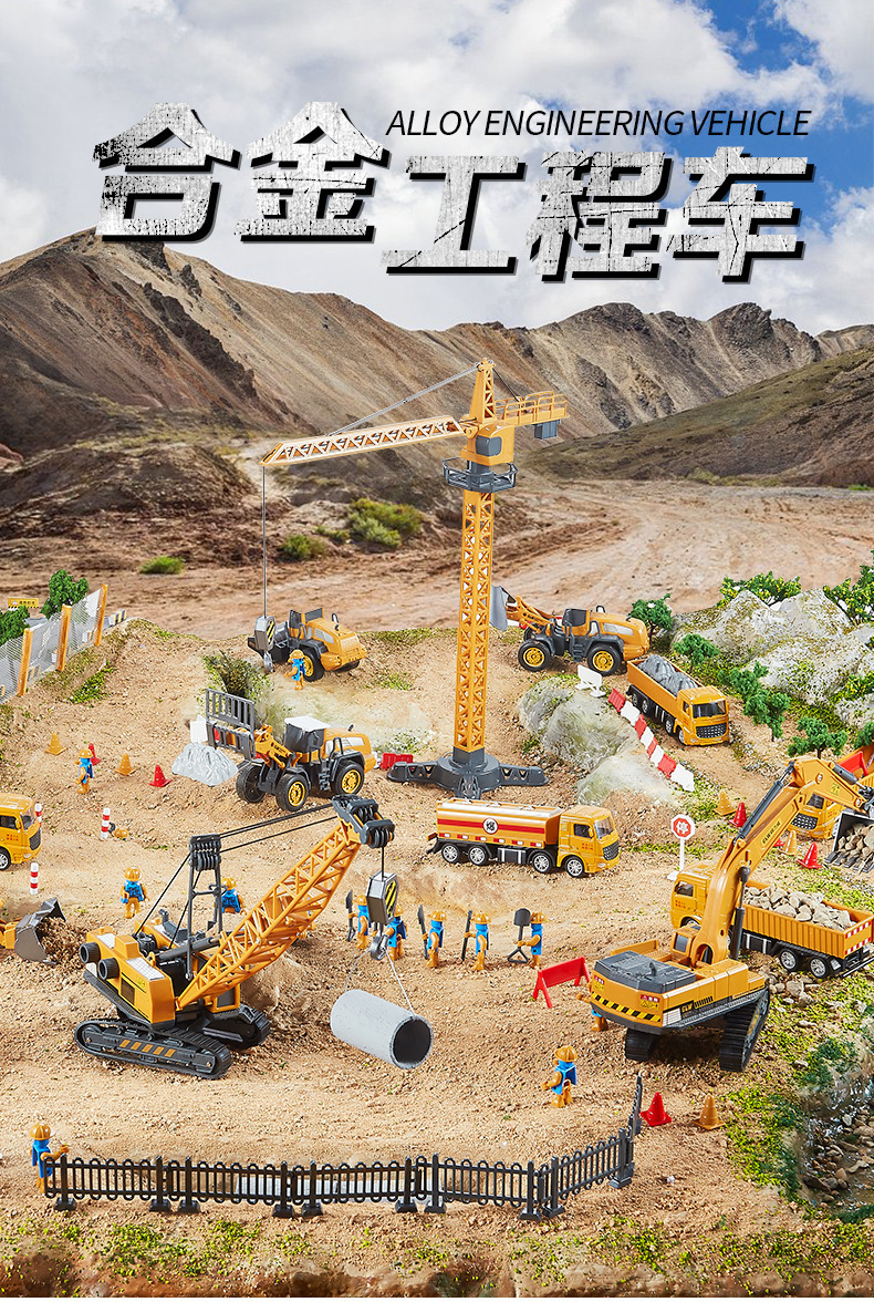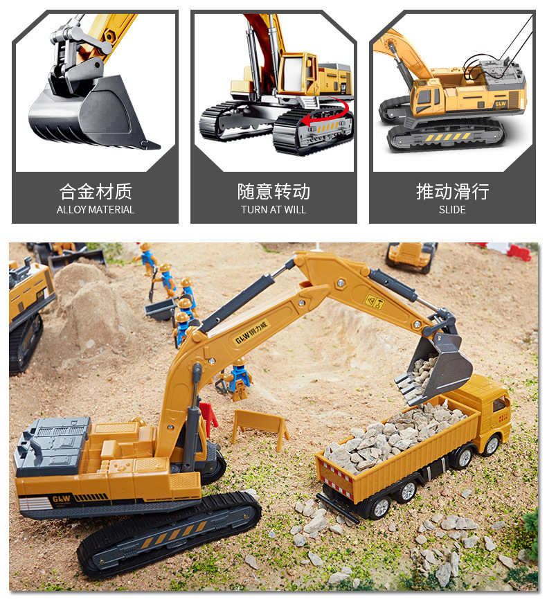 대형 합금 굴삭기 장난감 엔지니어링 차량 세트 시뮬레이션 크레인 크레인 어린이 소년 굴삭기