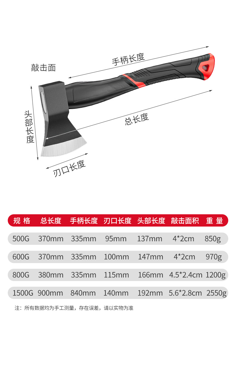 • [망치와 도끼 겸용] 플라스틱 코팅 확장 손잡이 도끼 800G (장갑 포함)