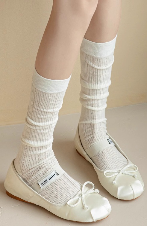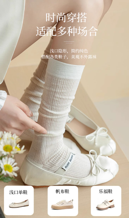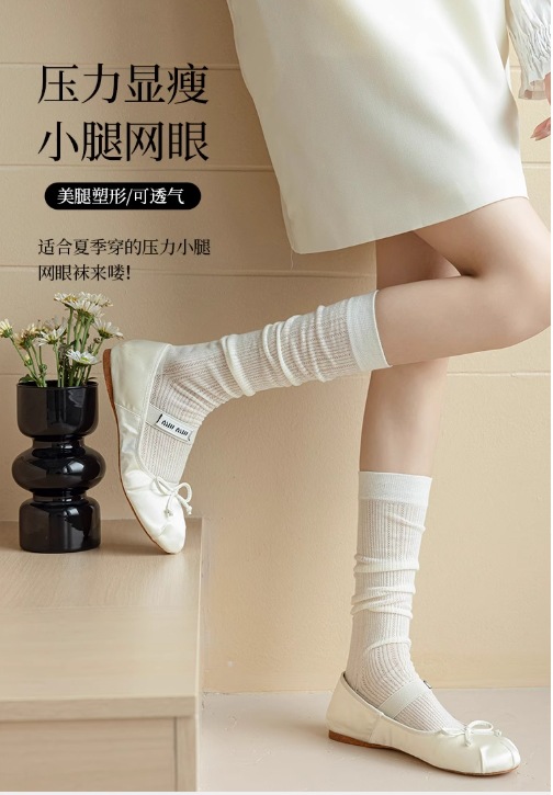 송아지 양말 미우 스타일 양말 여름 여성의 얇은 수직 중공 단색 Ins 트렌디 한 일본식 고층 양말스토어 가기
