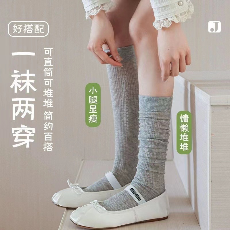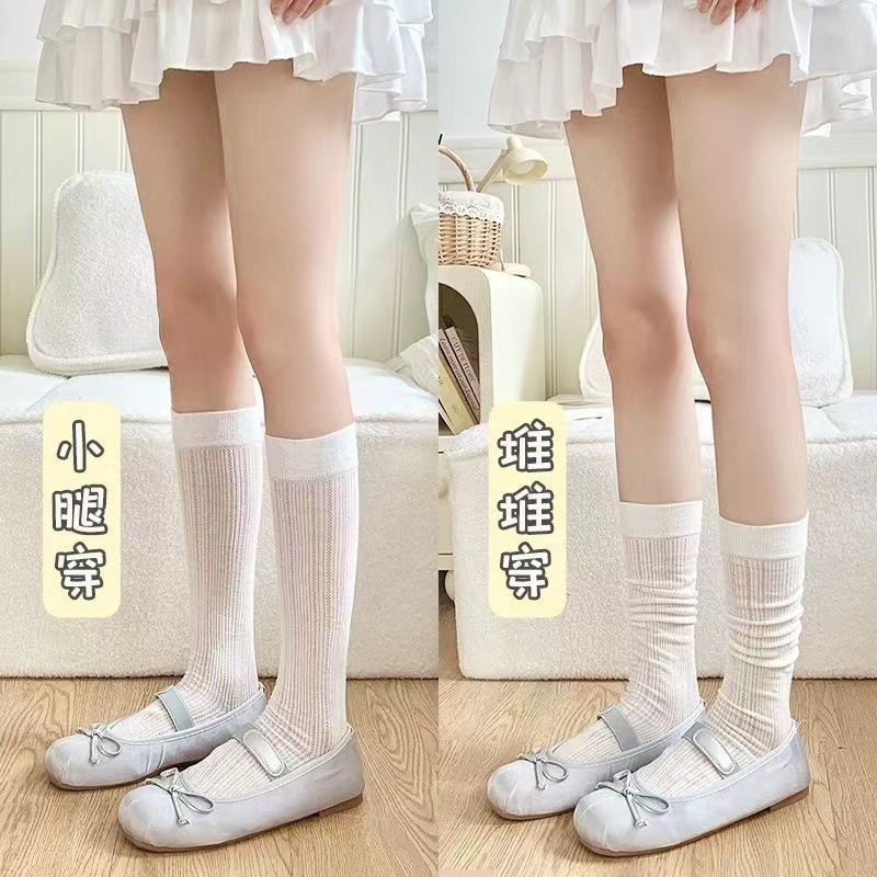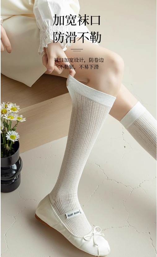송아지 양말 미우 스타일 양말 여름 여성의 얇은 수직 중공 단색 Ins 트렌디 한 일본식 고층 양말